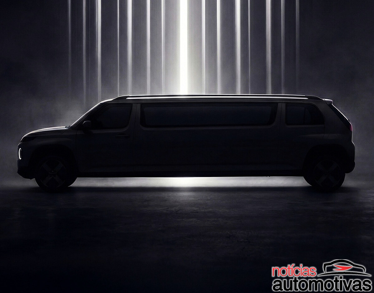 A brincadeira é engraçada por imaginar um carrinho minúsculo transformado em alongado de luxo, e ainda cutuca a mania do setor de exagerar em teasers.