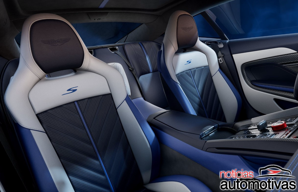 O DB12 S vem com três opções de acabamento interno: couro Accelerate e Alcantara, couro semianilina Inspire S e Alcantara e couro semianilina integral Inspire S.