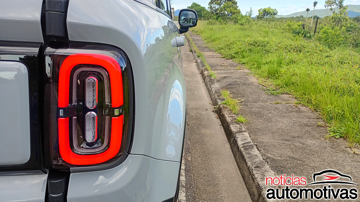 Os faróis full LED com as quatro barras de luz diurna e as lanternas verticalizadas na traseira criam um visual expressivo e até atraente. Note que a seção central da traseira em branco com o conjunto ótico apresentado nos recorda as antigas picapes da Chevrolet.