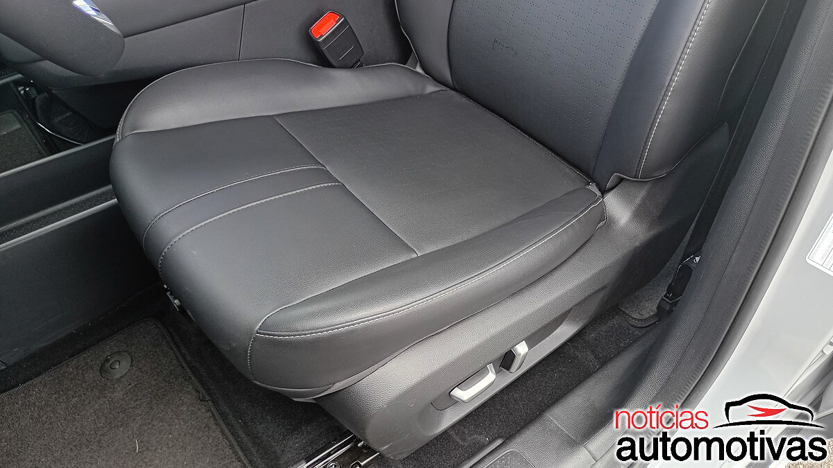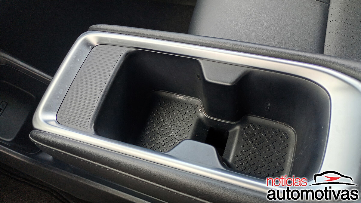 O painel, de visual moderno, que inclusive tem uma padronagem bege, amplia a percepção de um acabamento premium, inclusive envolvendo o console central avançado com porta-copos dotado de um furo.
