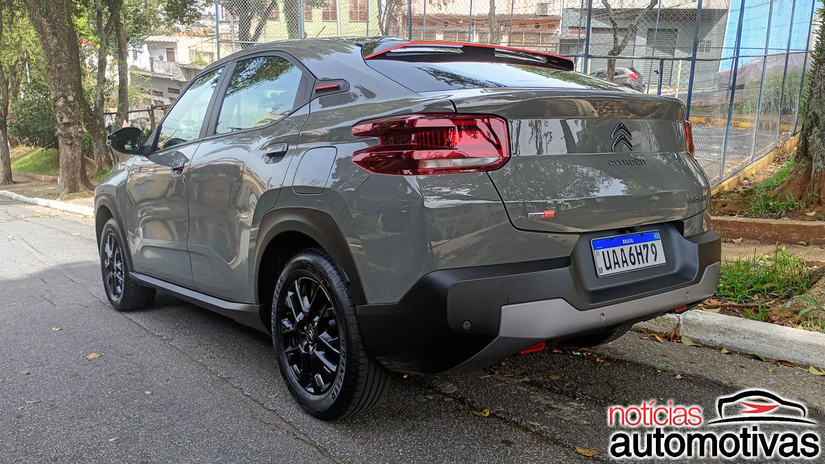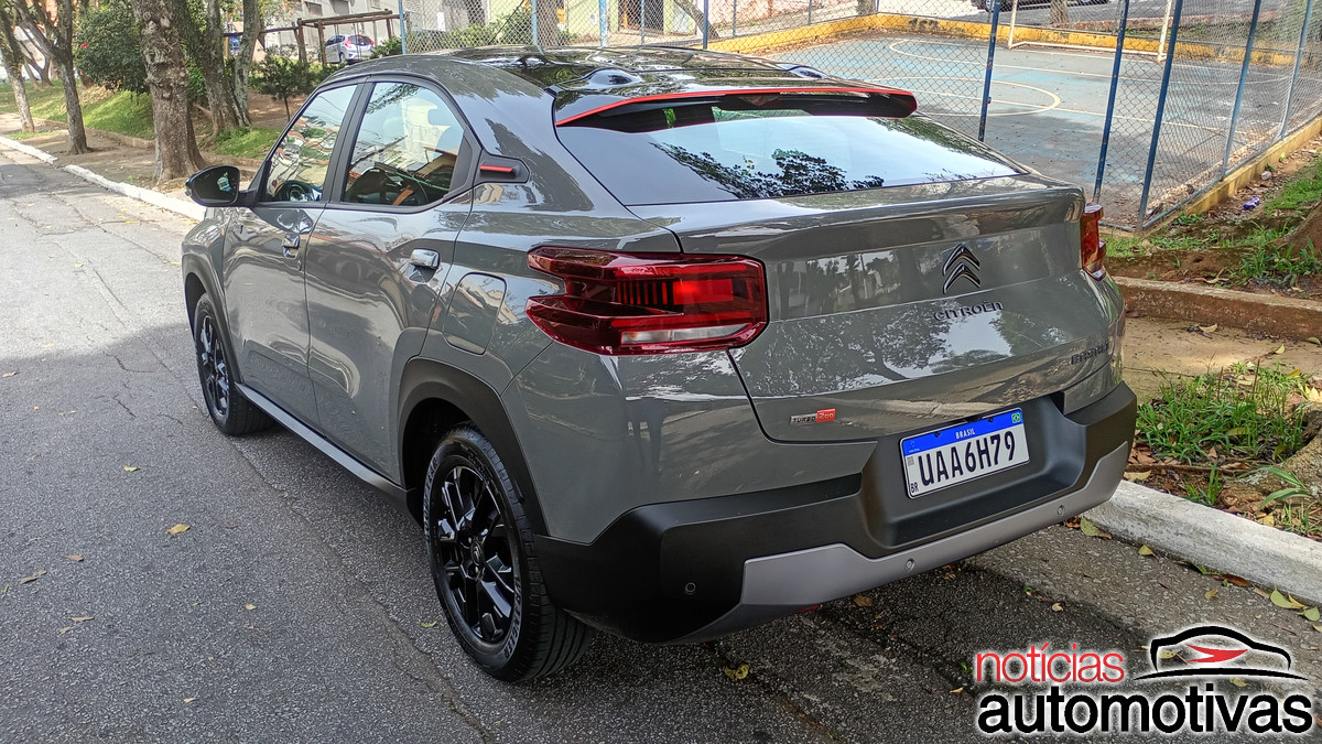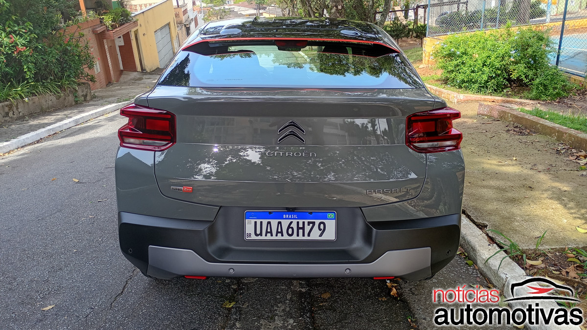 A ousadia de sempre da Citroën só está presente no Basalt por meio de sua traseira com lanternas estilizadas ressaltadas nas extremidades, assim como o pequeno aplique junto às portas traseiras.