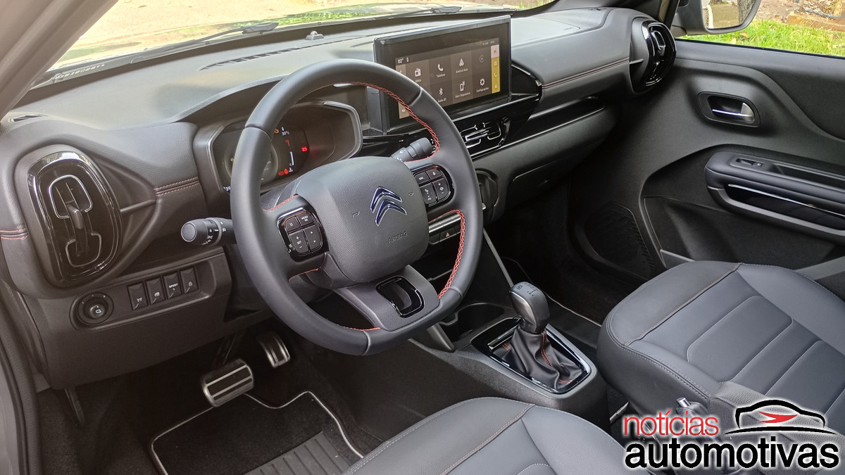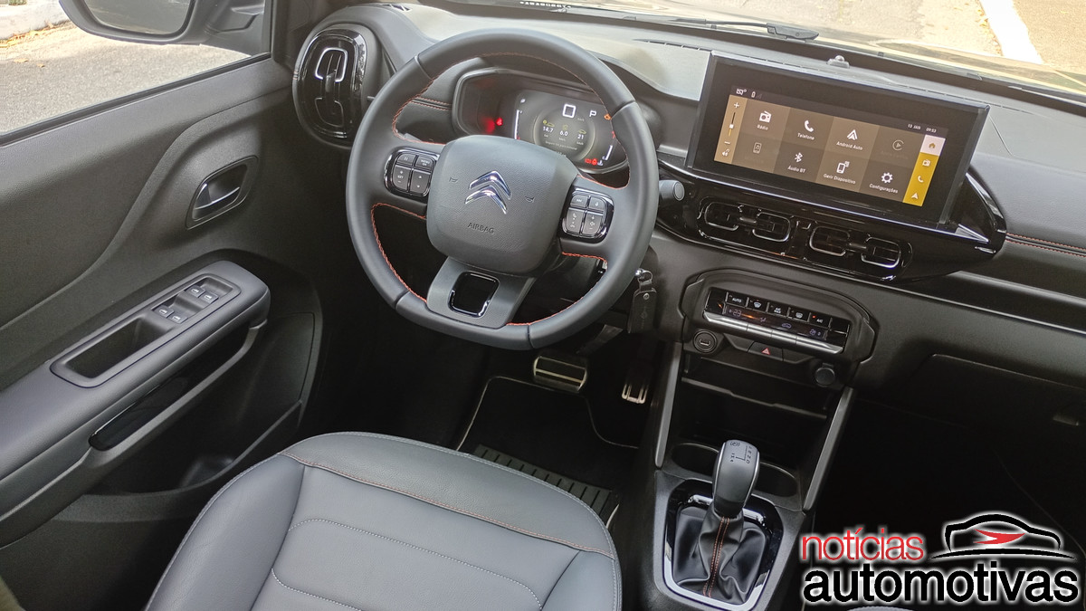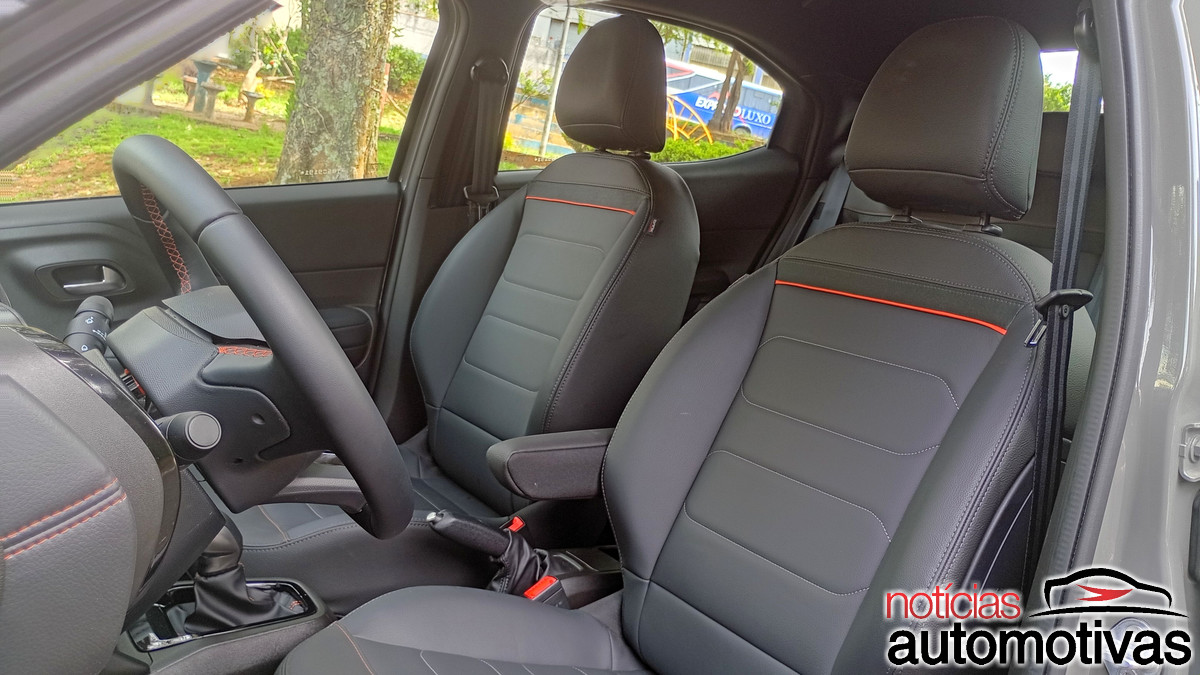 Mesmo sem ajuste em profundidade, a direção renovada já ajuda, assim como o ar-condicionado digital e a boa oferta de espaço para coisas. Apliques em preto brilhante também estão presentes, bem como o cluster digital bem resolvido e a multimídia.