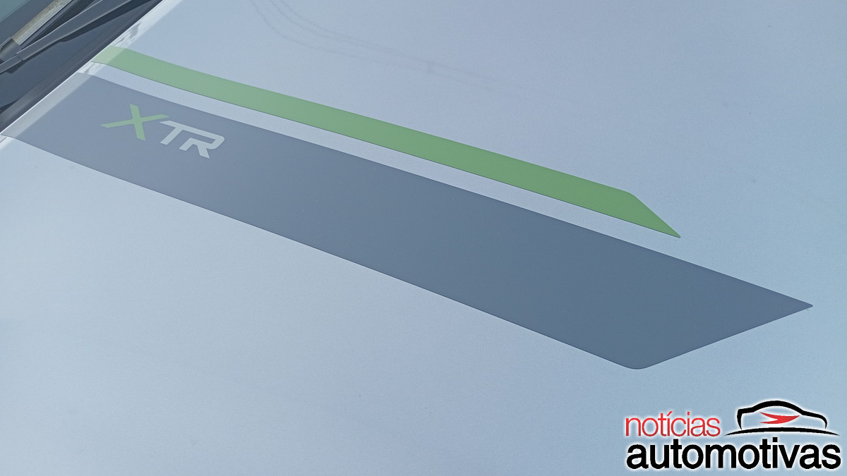 Este Citroën foca mesmo é na personalização e isso fica evidente nos detalhes, como as faixas sobre o capô, bem como o badge exclusivo XTR, a base da carroceria escurecida, como teto, colunas e retrovisores.