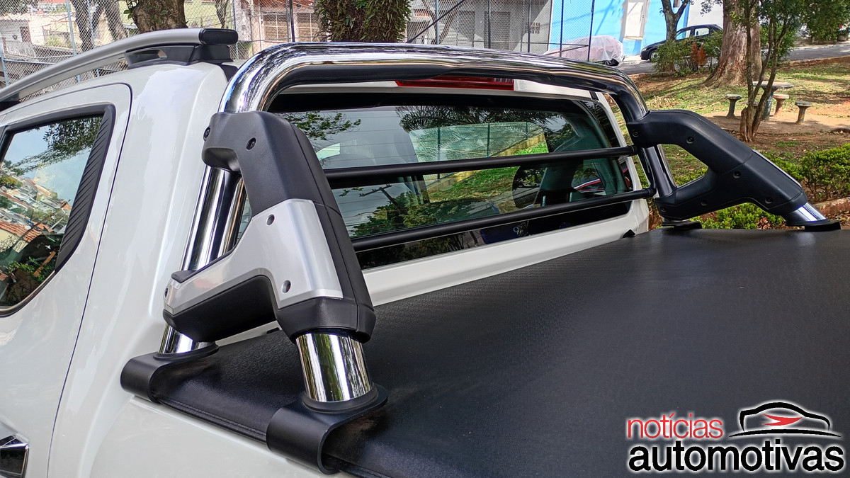 Já a caçamba de 1.109 litros tem acesso com uma tampa pesada e sem nenhum amortecimento, além de capota marítima e nenhum degrau extra para facilitar o embarque com a tampa aberta, só o da placa com ela fechada.