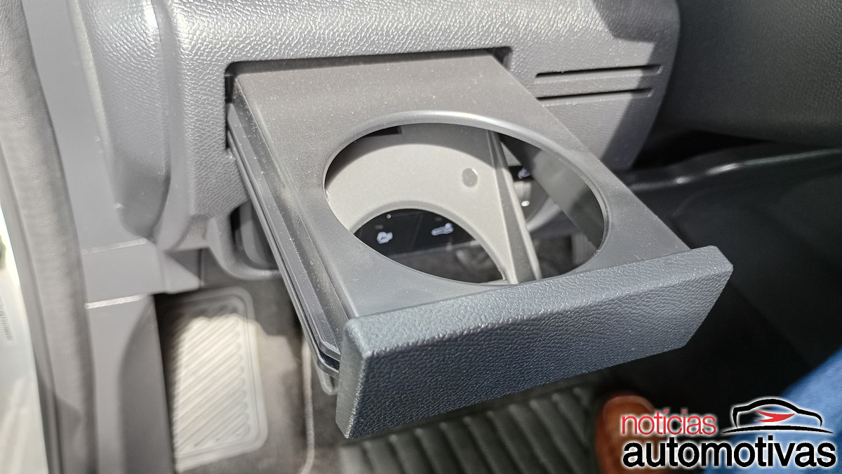 Porta-copos adicionais em cima do painel no lado do passageiro, bem como retrátil para o motorista, contribuem para a comodidade.
