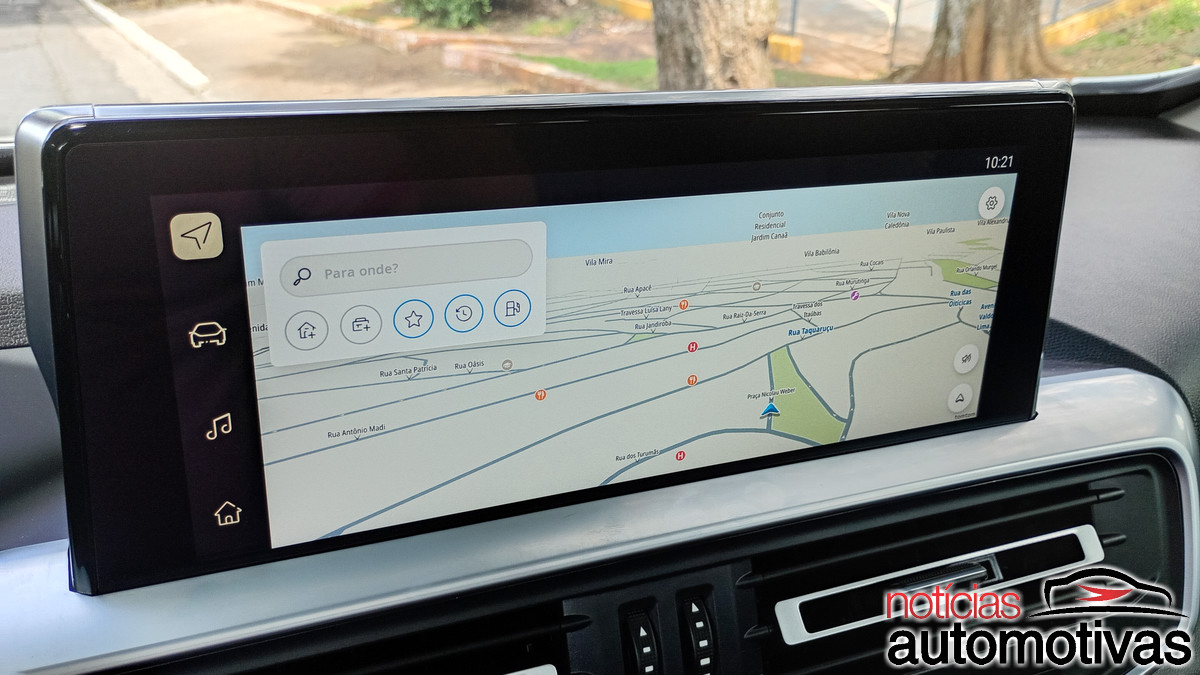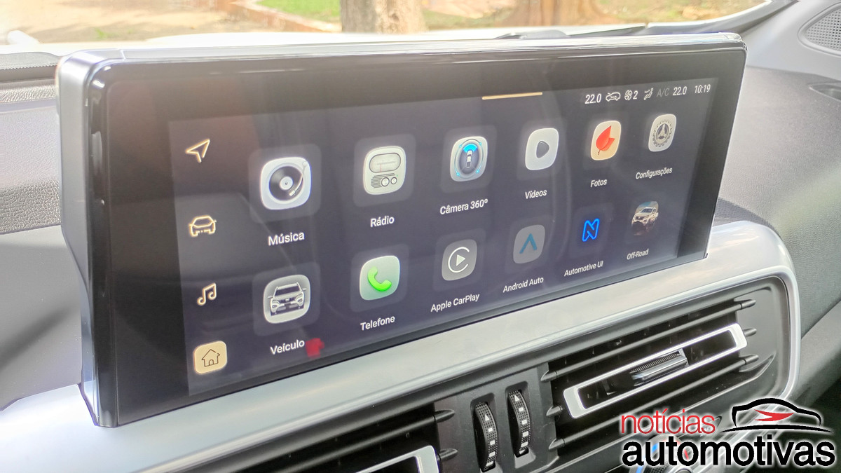 Ela parece de origem chinesa e às vezes trava ou demora demais, tendo monitoramento em 360 graus com modelo 3D, bem como conexão sem fio para Android Auto e CarPlay.