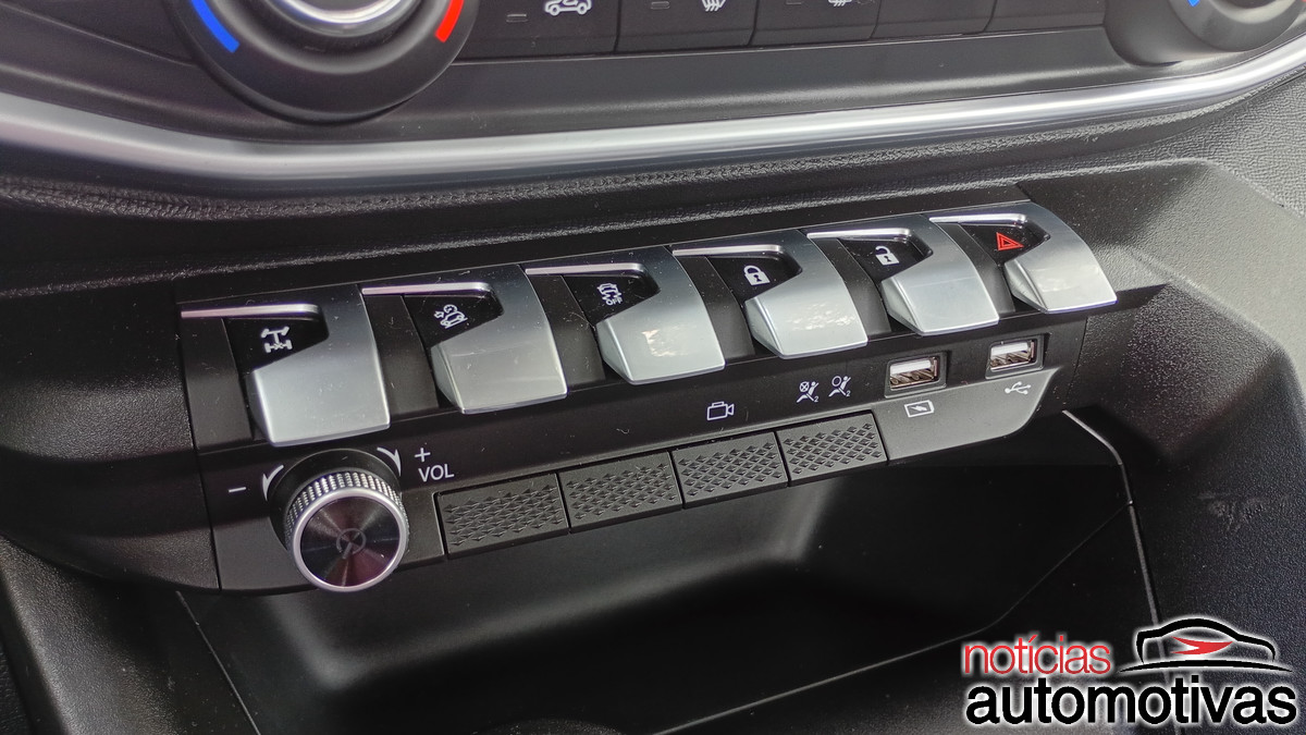 O ambiente de design da Peugeot, tem detalhes em cinza, que lembram a van Expert, por exemplo. Aliás, as teclas de estilo piano também são outra herança da francesa.