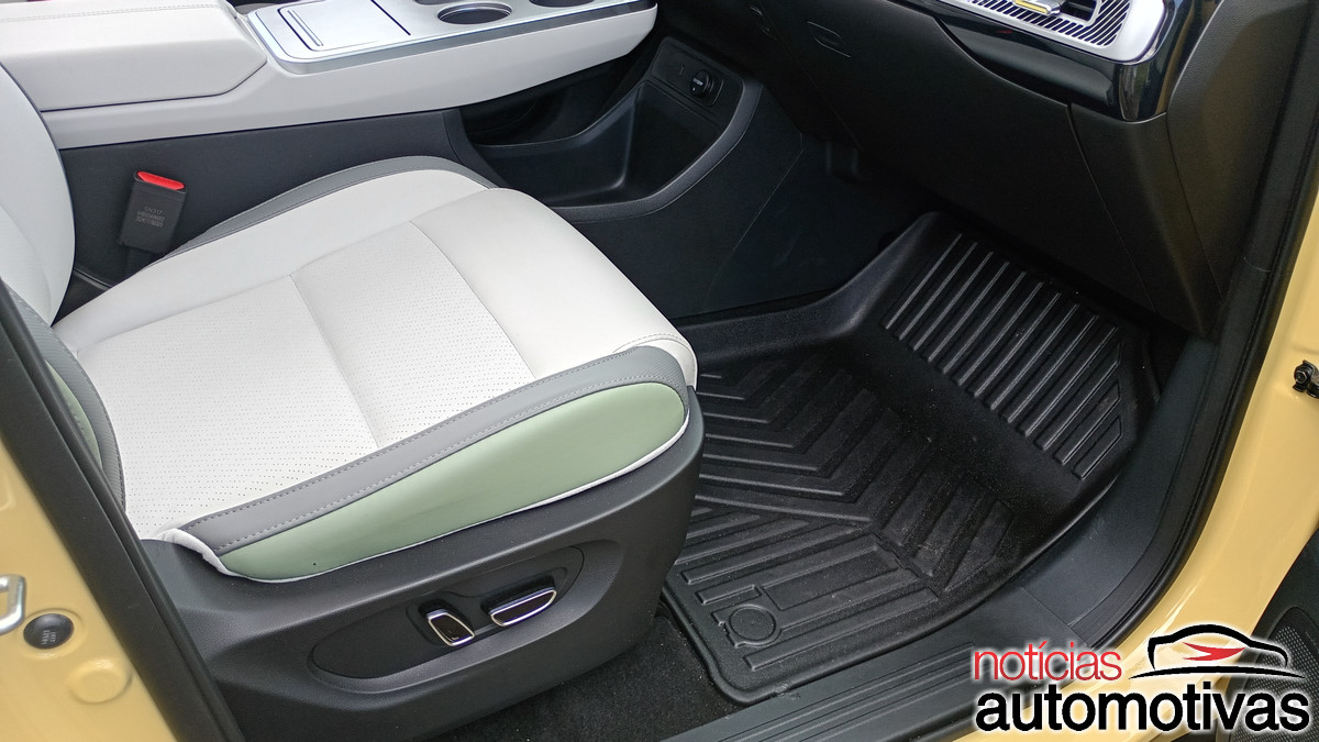 Os bancos dianteiros têm ajustes elétricos e o do motorista tem ventilação, inclusive com modo inteligente, enquanto o ar-condicionado, apesar de dois comandos de temperatura, só tem uma zona.