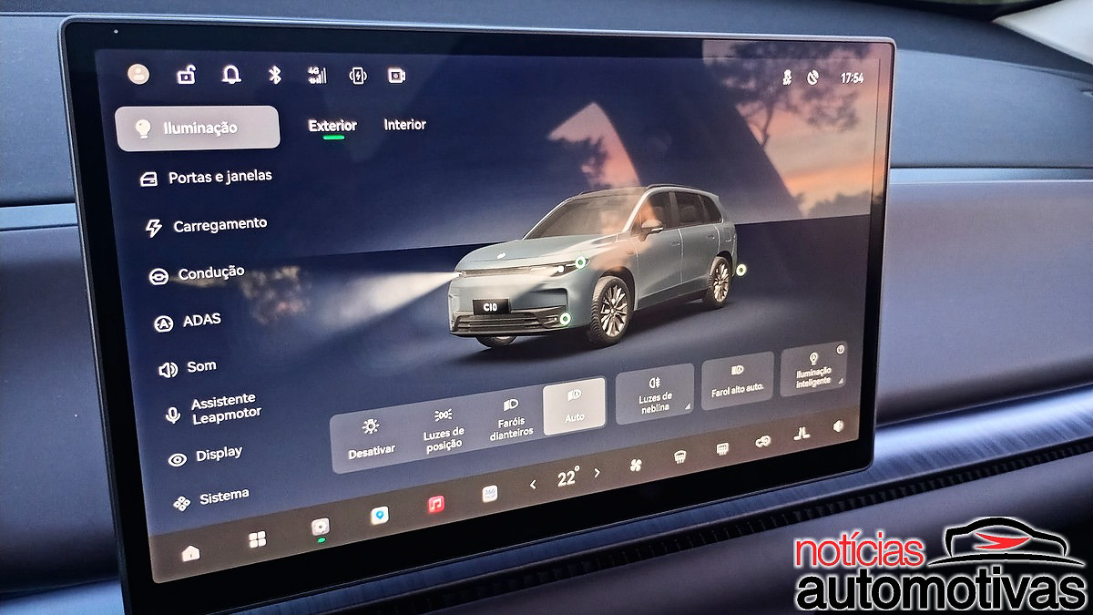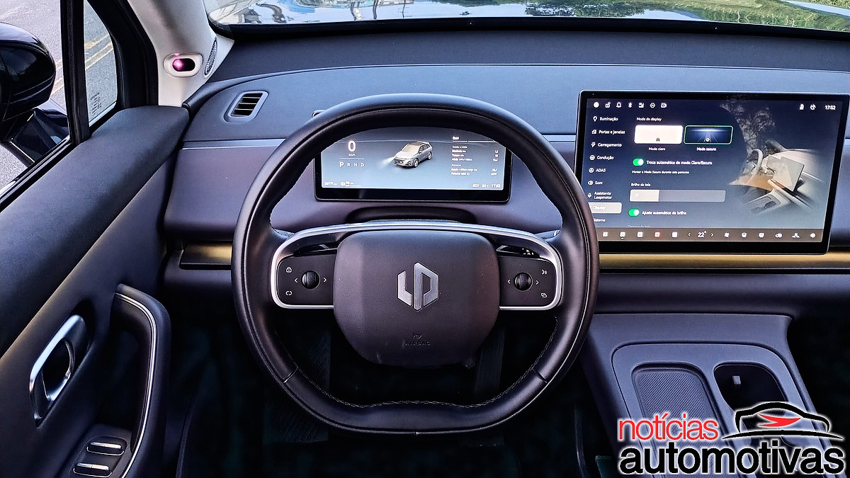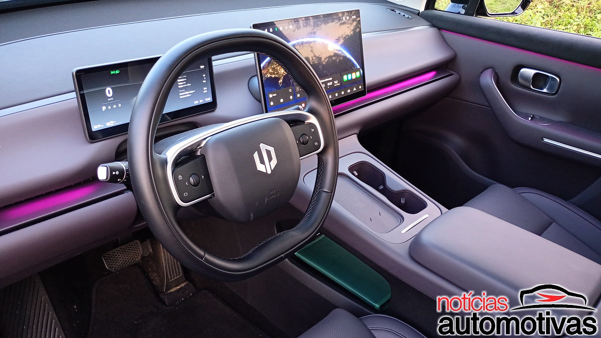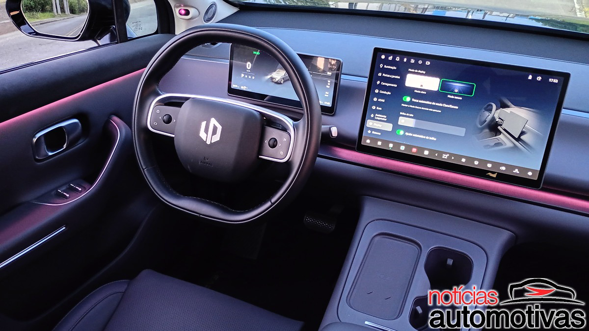 A Leapmotor aboliu praticamente todos os comandos físicos, deixando somente os botões dos vidros elétricos, muito sensíveis, e dos assentos dianteiros, além de hastes para o ACC, marcha e limpadores.