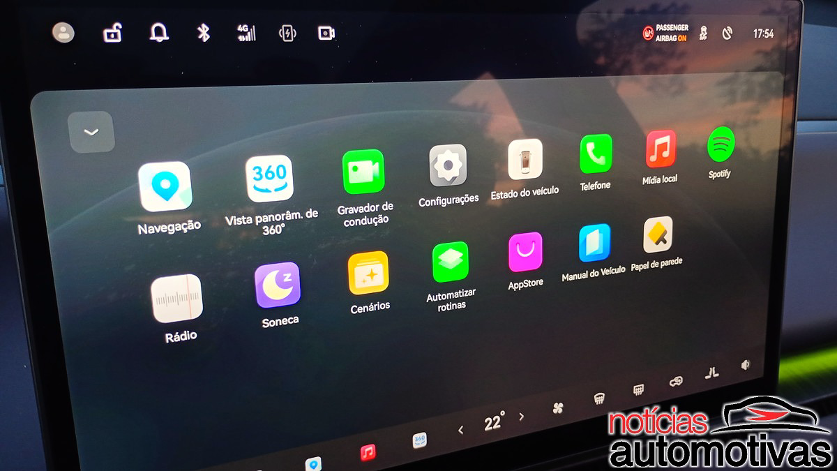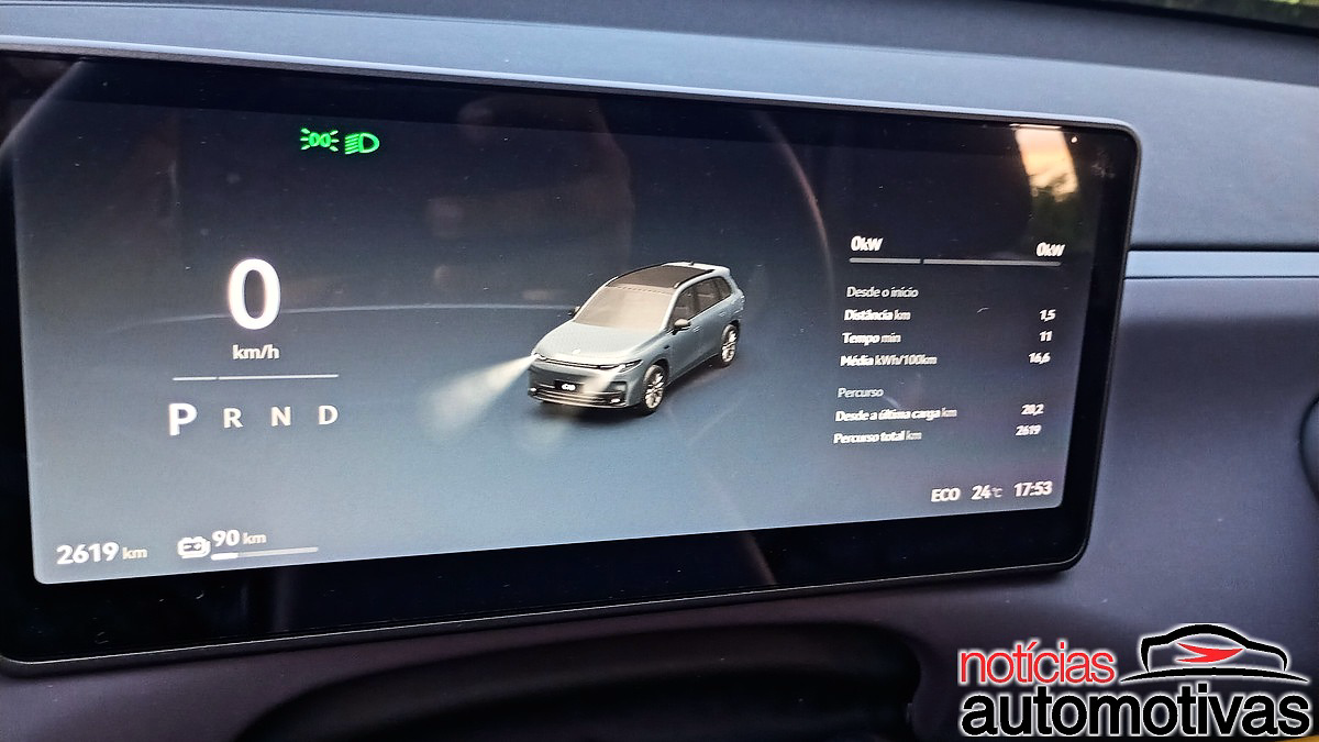 Faróis, modos de condução, energia, monitoramento em 360 graus, modos de descanso, entre outros, estão na multimídia. Há comandos de voz para automatizar algumas funções, mas precisa de mais funções para atender bem.