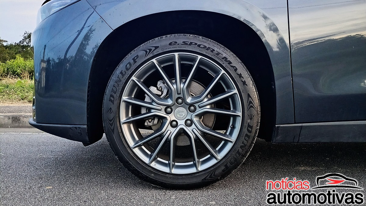 Com teto panorâmico e câmeras em apliques laterais, o C10 BEV tem rodas de liga leve aro 20 polegadas com pneus 245/45 R20, além de boa altura em relação ao solo. Atrás, o crossover elétrico traz lanternas em LED integradas em uma barra horizontal.