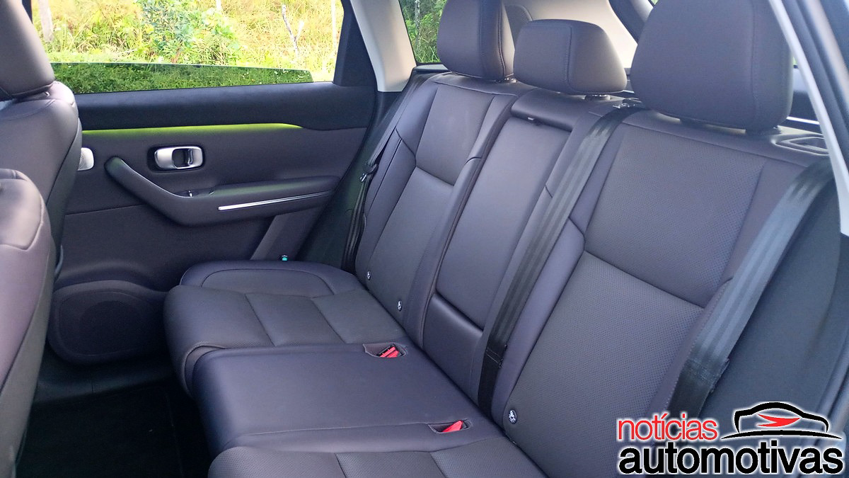 O espaço interno é ótimo, especialmente atrás, com saídas de ar e apoio de braço central. O sistema de som digital é bom também.