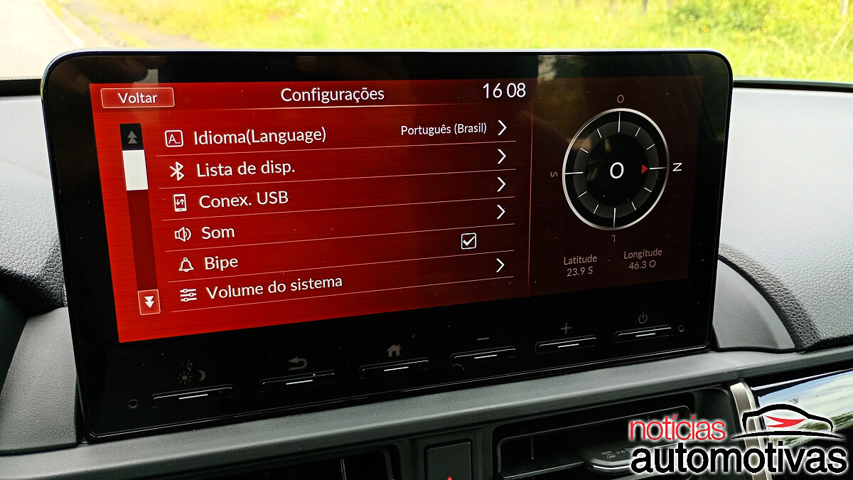 Destaque para o ar-condicionado digital e também para a multimídia com Android Auto e CarPlay, com câmera de ré angular em três posições.