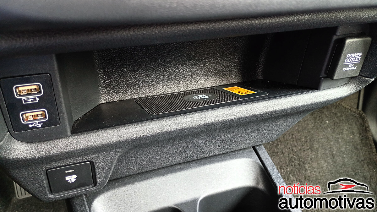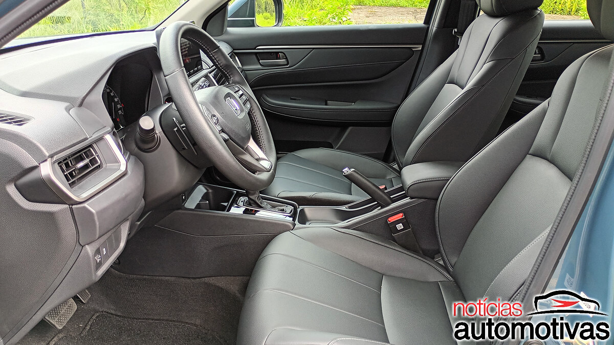 Tendo ainda carregador indutivo de smartphone e a boa organização de porta-copos e objetos, o WR-V tem acabamento no padrão dos compactos da Honda, com bancos revestidos em couro.