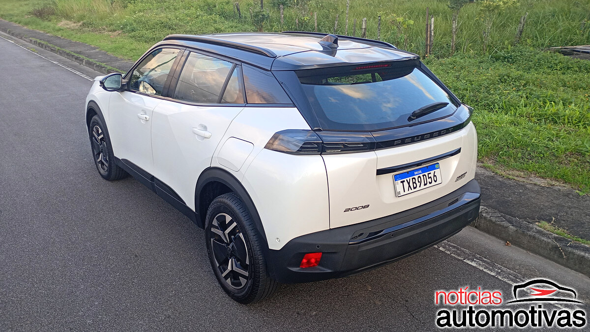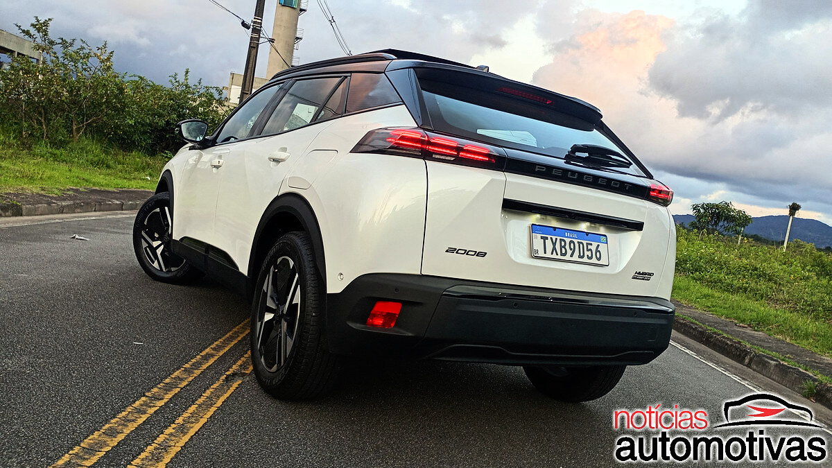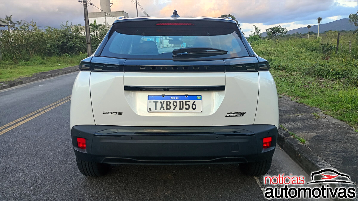 Atrás, o 2008 GT Hybrid tem lanternas tridimensionais em LED incorporadas a uma moldura preta com o nome Peugeot, enquanto o para-choque (bem resistente) se projeta. Teto e colunas pretas, com teto solar panorâmico, completam o belo visual.