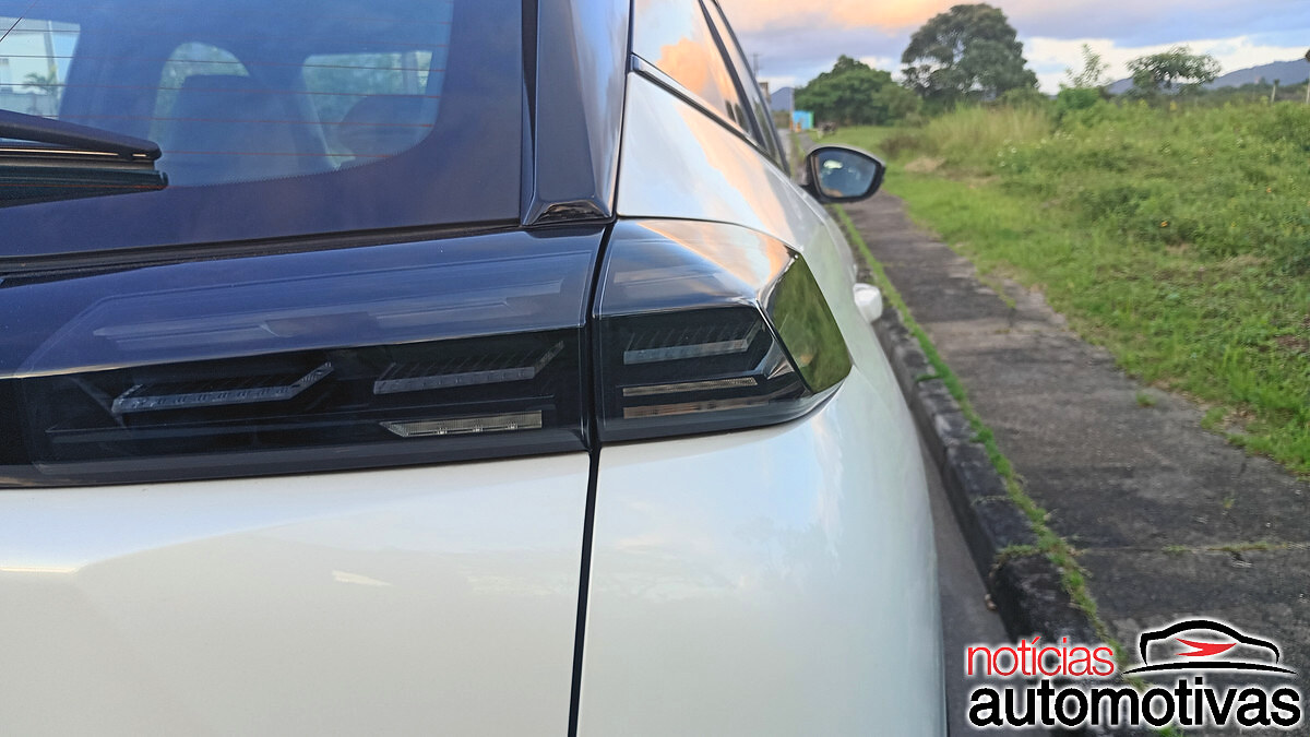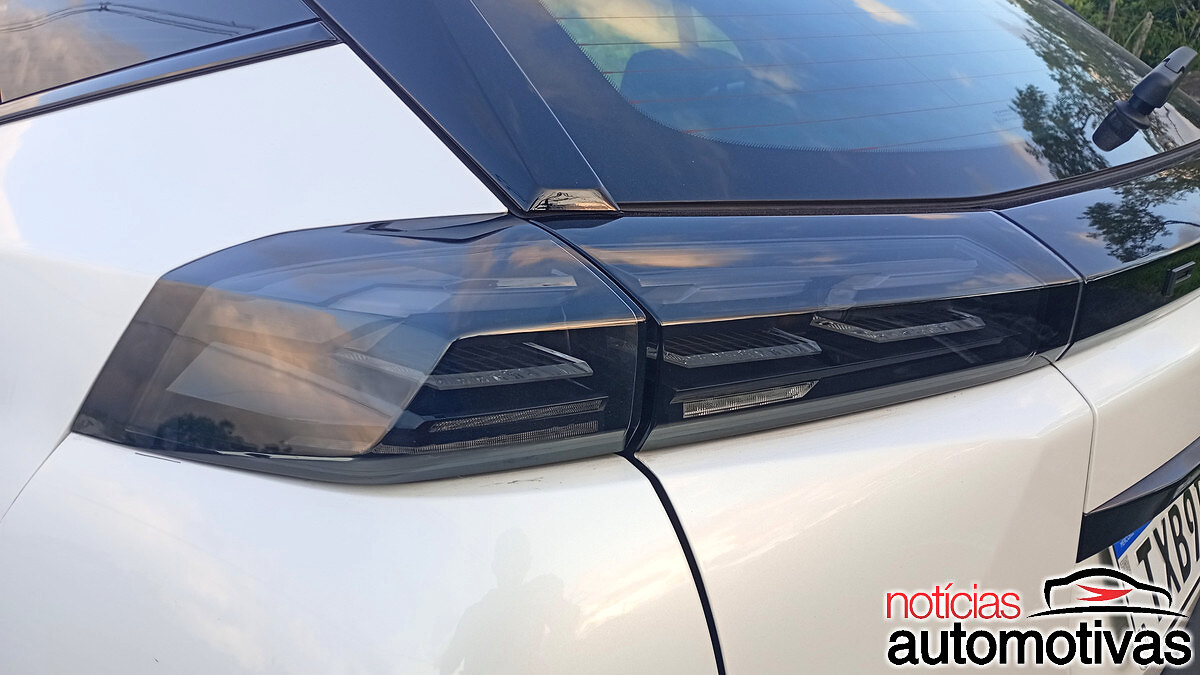 Nas extremidades, sob coberturas transparentes, estão as três barras de LED que remetem às garras do leão. A entrada de ar inferior é dupla e tem um discreto spoiler. Já nas laterais, destaque para as estilosas rodas de liga leve aro 17 polegadas.