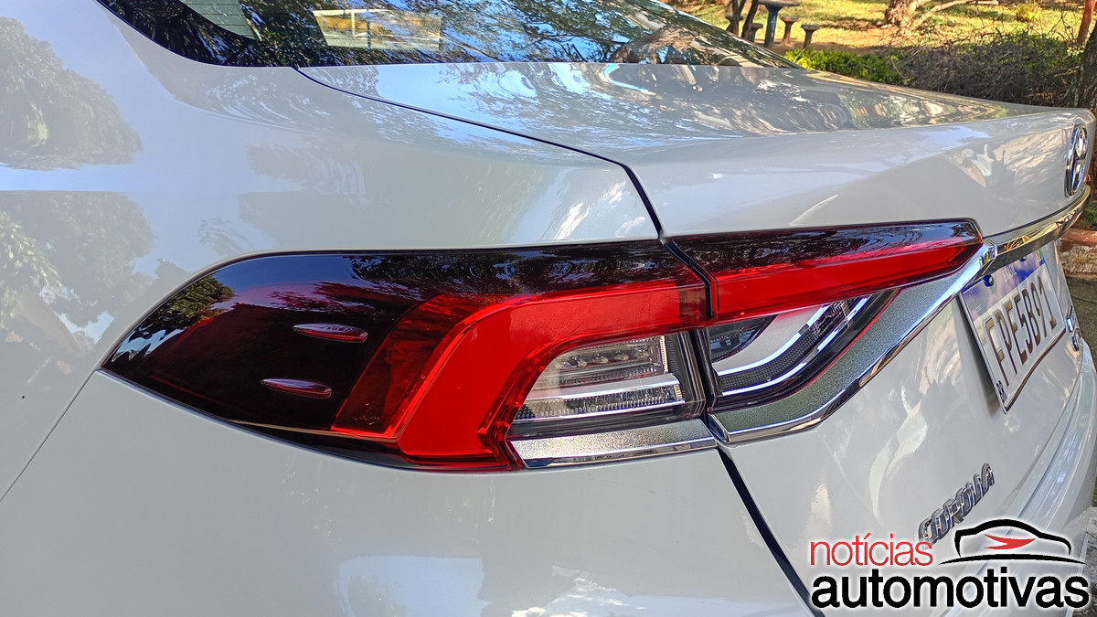Atrás, as lanternas bem distribuídas e fusionadas com um acabamento cromado são atraentes e deixam o conjunto traseiro mais leve, como de fato é a proposta original do Corolla no Japão.