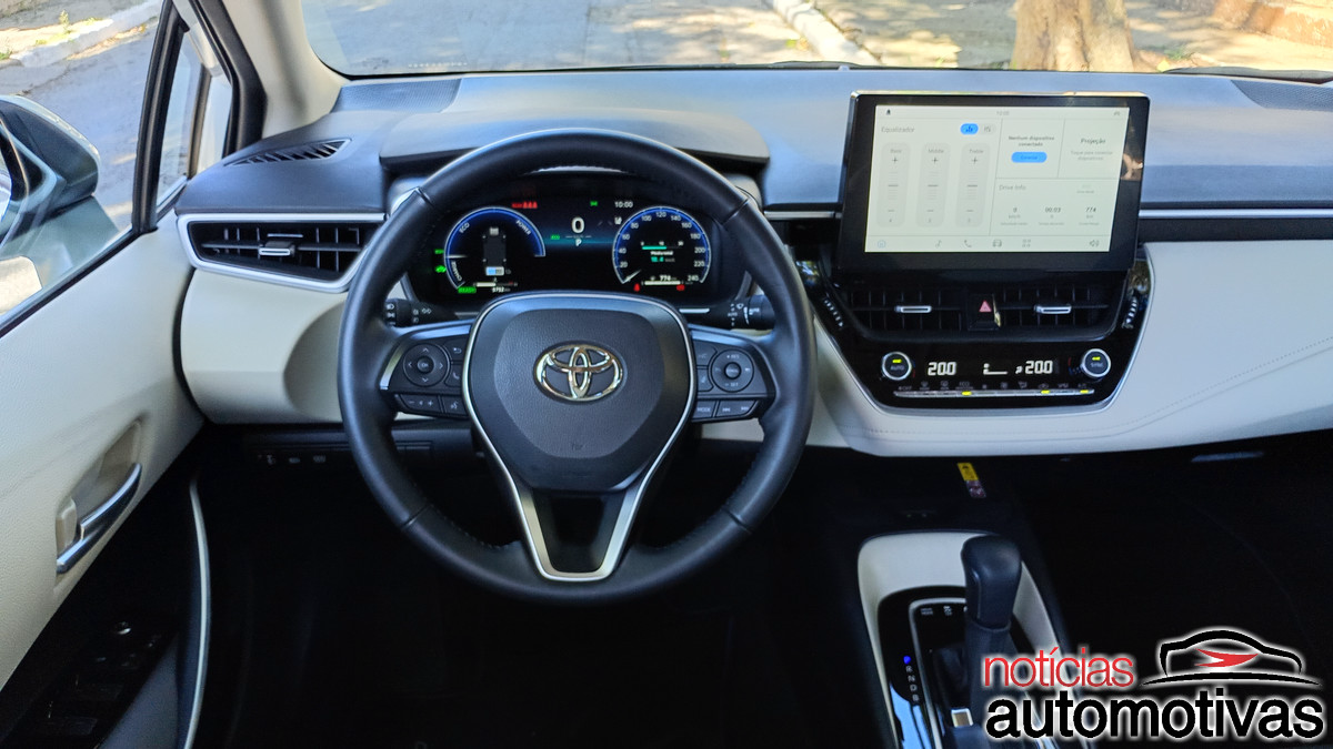Fora isso, boa direção, com dinâmica de condução bem acertada, ainda mais com um ajuste de suspensão que o aproximou muito da referência de sempre, o antigo Honda Civic. Com freios suficientes, o Corolla Hybrid se mostra um ótimo carro no dia a dia.