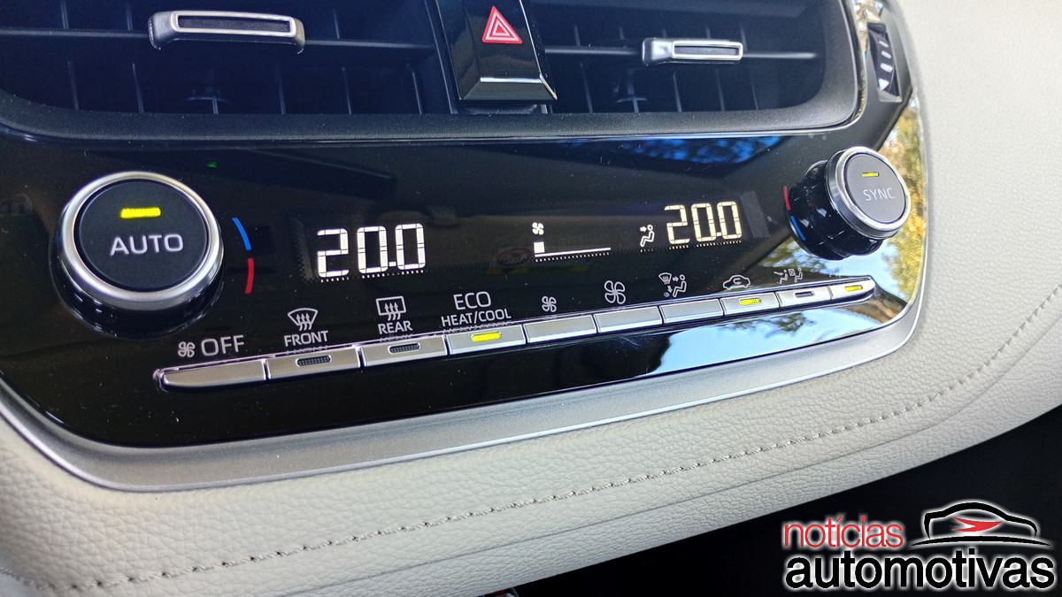 Tendo sistema de climatização com função Eco, dual zone e limitador para motorista, o Corolla Altis Premium mantém suas vantagens, assim como tendo um carregador indutivo útil no console.