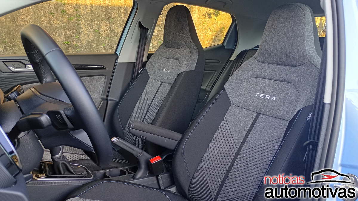 O Tera é sim menos espaçoso e tem a proposta de “vestir” os ocupantes, especialmente com seus pronunciados apoios de braços nas portas com puxadores internos. Ainda que existam cinco lugares, ele é feito mesmo para quatro.