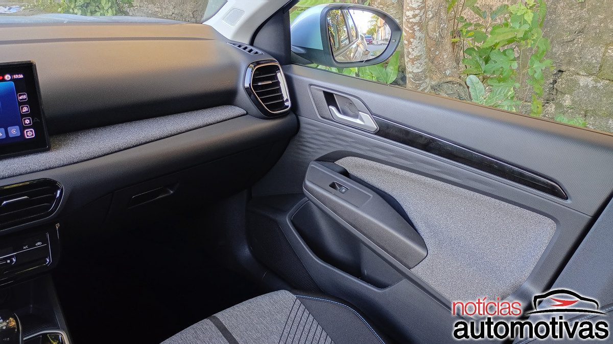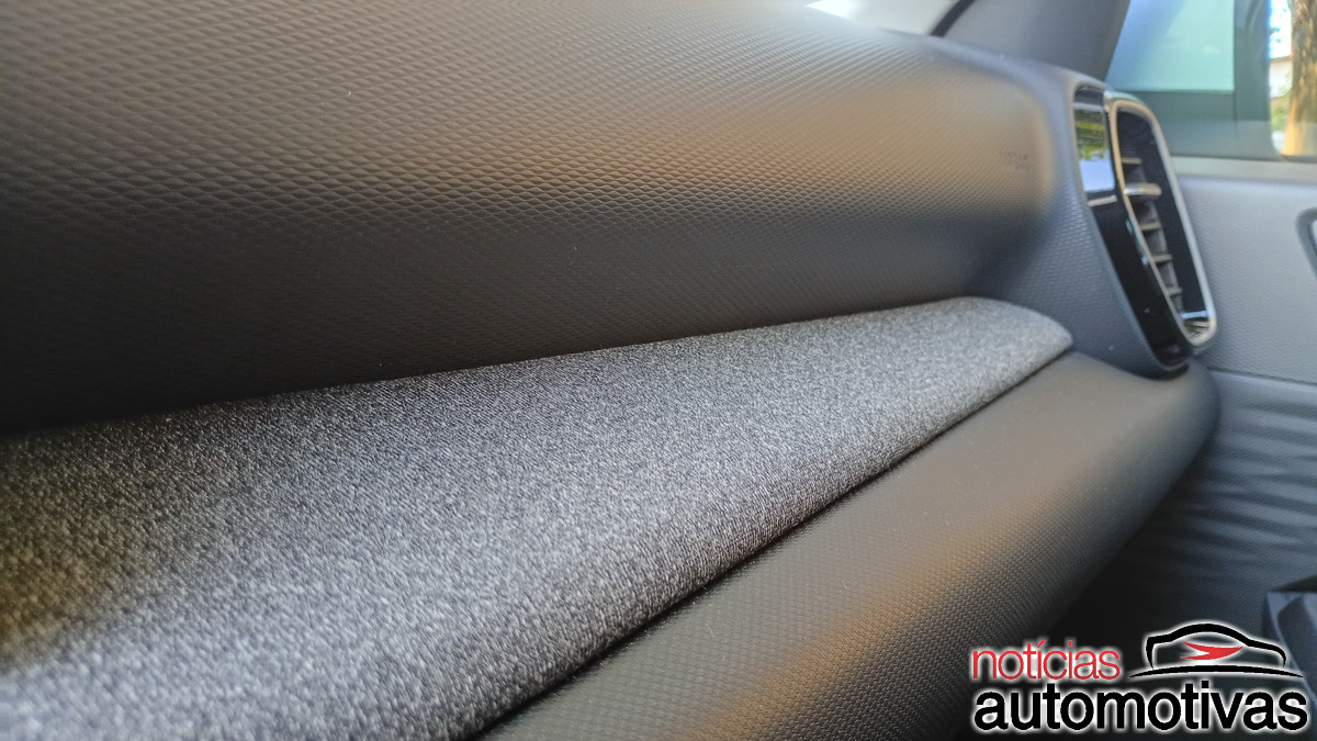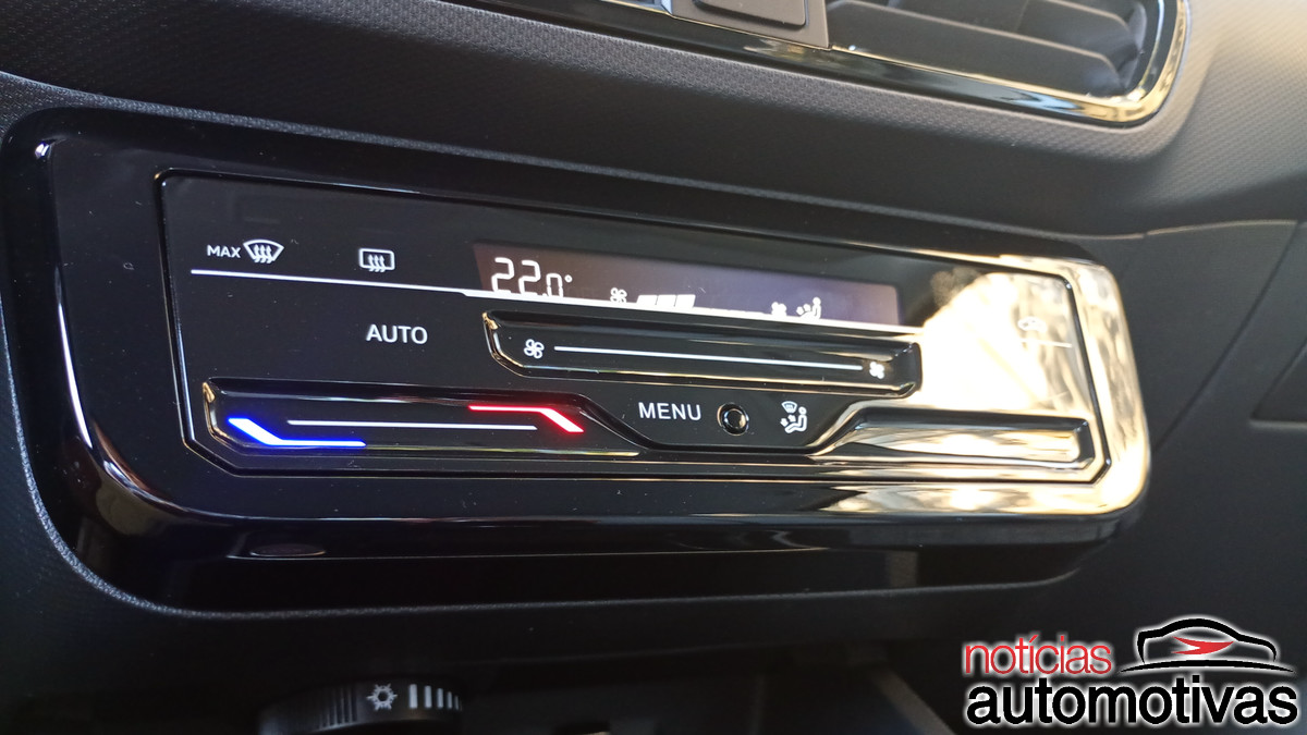 De resto, bom acabamento dos bancos volumosos dianteiros, volante de boa pegada com o ACC Front Assist do passado e itens incompatíveis em um carro que não tem câmera de ré: botão de partida e ar-condicionado digital.