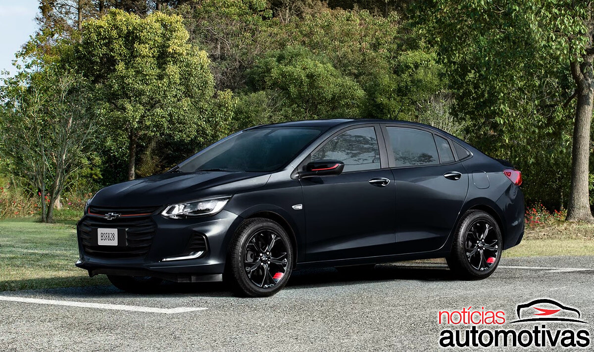 Com visual esportivo, o Chevrolet Onix Sedan Premier Redline se destaca pela pintura escura com detalhes em vermelho na grade, retrovisores e nos emblemas, assim como rodas de liga leve aro 16 polegadas em preto brilhante com um toque de vermelho. O acabamento também é escurecido com detalhes em vermelho,