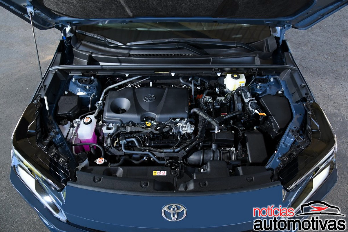 Na mecânica, o Toyota RAV4 2026 é composto por um motor 2.5 litros que atua em conjunto com o motor elétrico principal (MG2) por meio de uma transmissão planetária, além do motor auxiliar MG1 e a bateria de íons de lítio.
