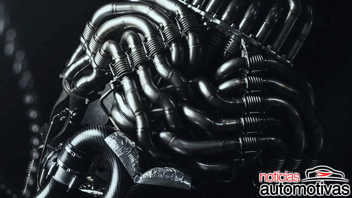 Girando a 12.300 rotações por minuto como um pulsar ameaçador, o V12 “alien” do P900 distribui as ondas térmicas de suas detonações por 12 longos tubos quase entrelaçados, que parecem tentáculos de algo que pode tomar vida a qualquer momento.