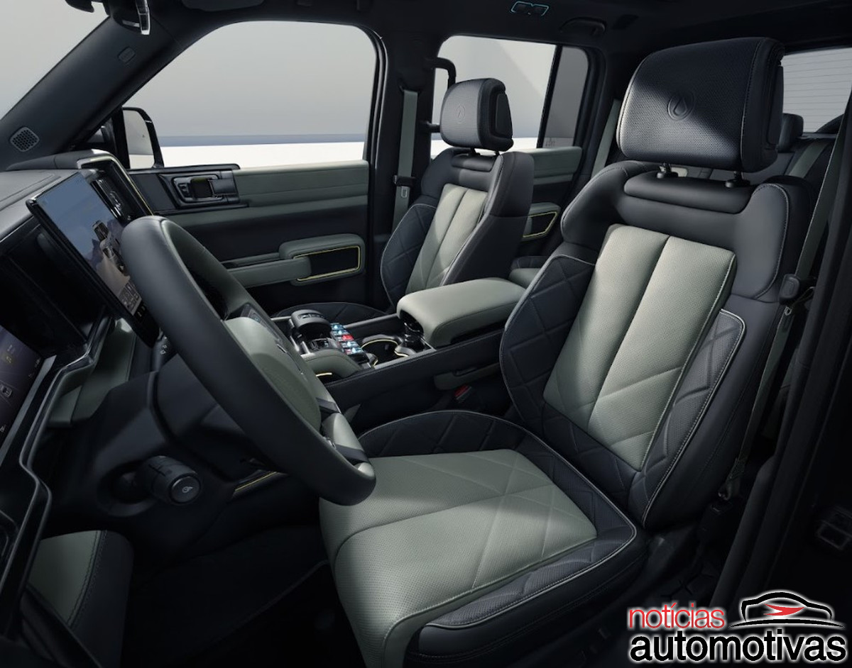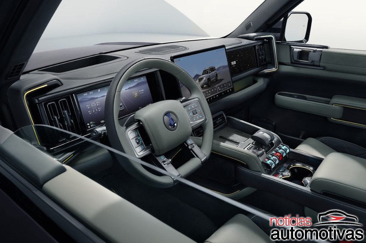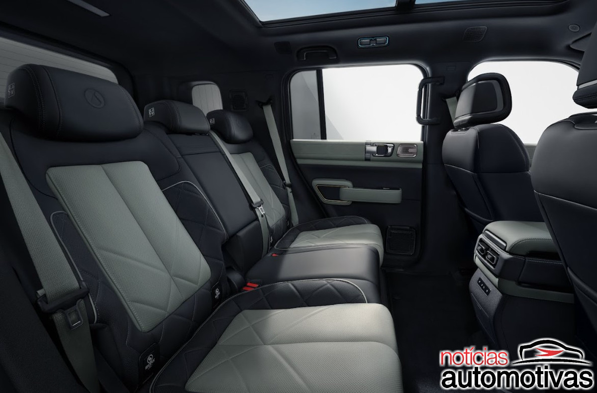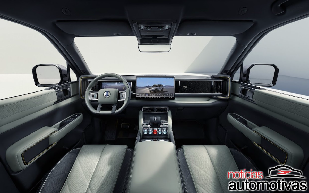 O jipão conta ainda com 11 airbags de série e 96% de aço de alta resistência na construção da carroceria, além da tecnologia CTC (Cell to Chassis) e o coração do carro, a bateria Blade.