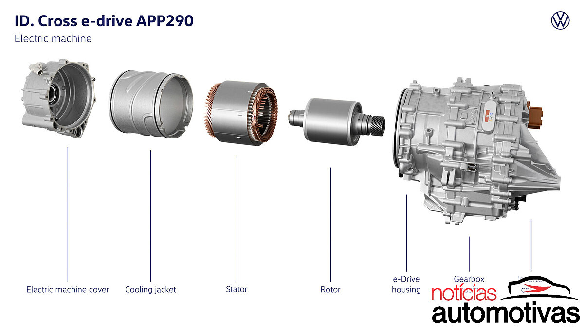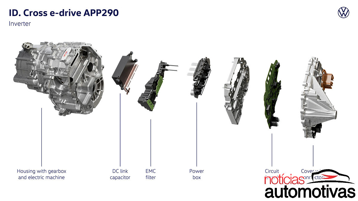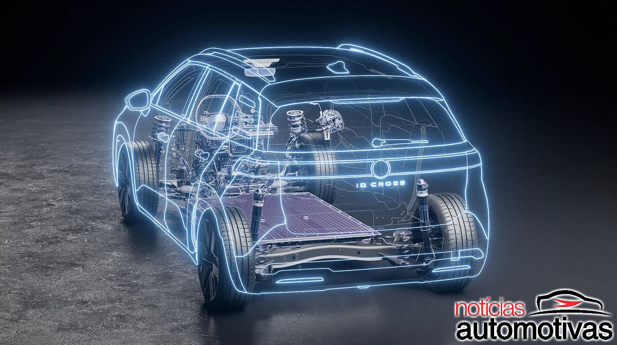 Nas imagens, a Volkswagen revelou a arquitetura interna do ID. Cross, que terá tração dianteira nativa e um sistema de propulsão-transmissão compacto, bem como suspensão traseira por eixo de torção para baratear o produto e simplificar a linha.