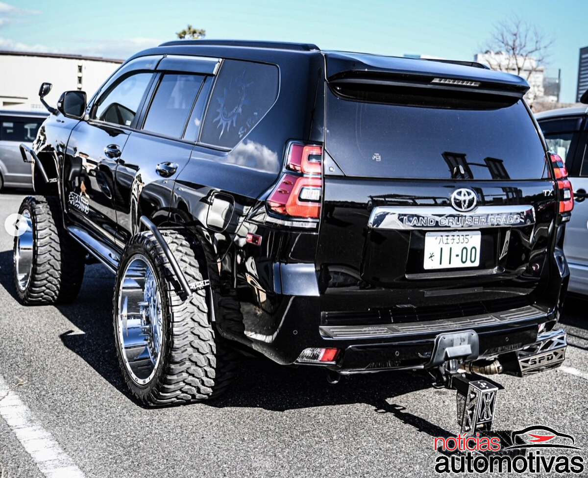 O SUV em questão pertence a um usuário conhecido como @k150.jst no Instagram, que compartilha fotos do seu Prado ao lado de outras picapes e utilitários modificados no mesmo estilo.