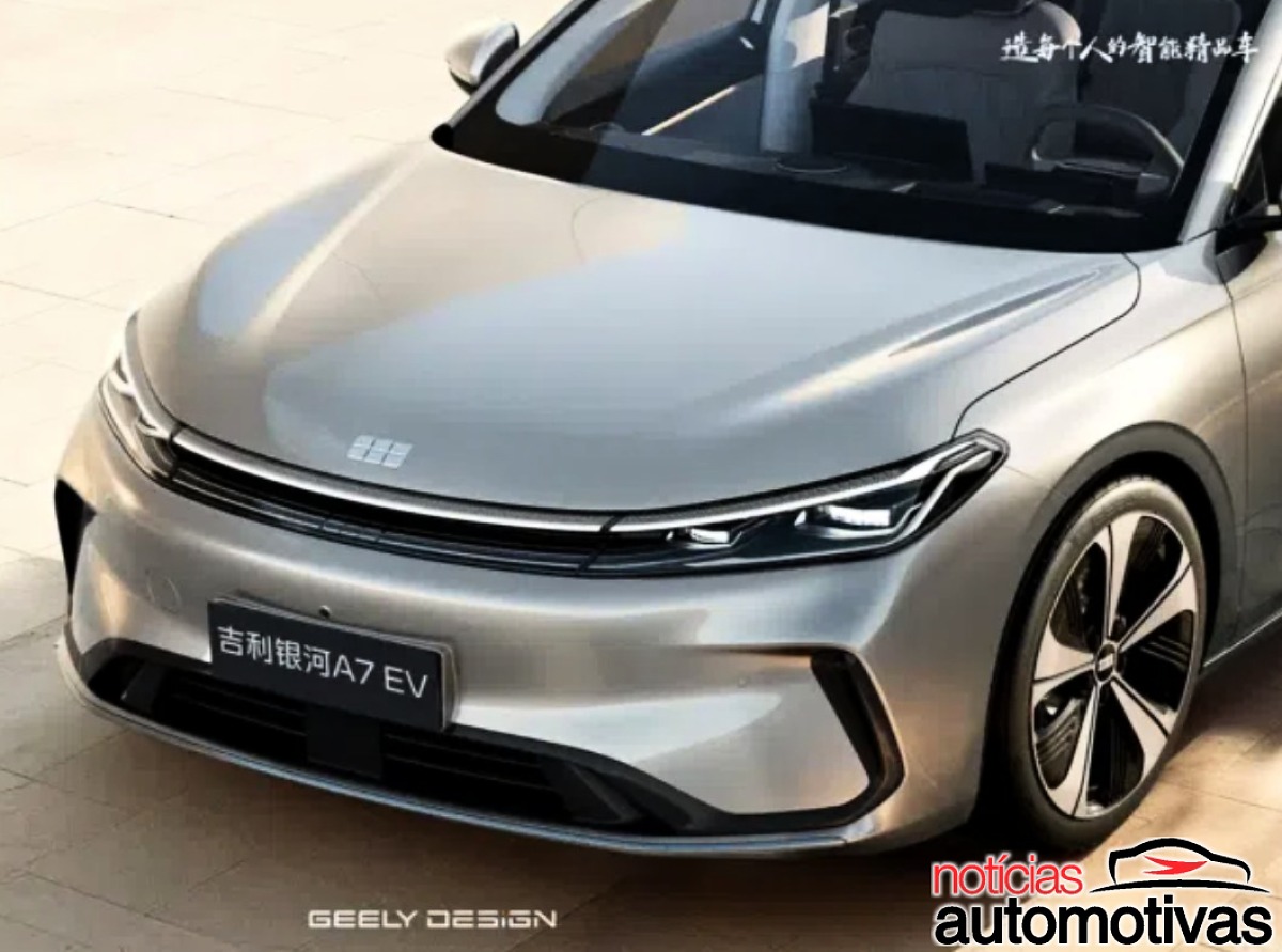 A Geely divulgou as primeiras imagens oficiais do Galaxy A7 EV, um sedã médio 100% elétrico que já havia aparecido em registros do Ministério da Indústria e Tecnologia da Informação da China.