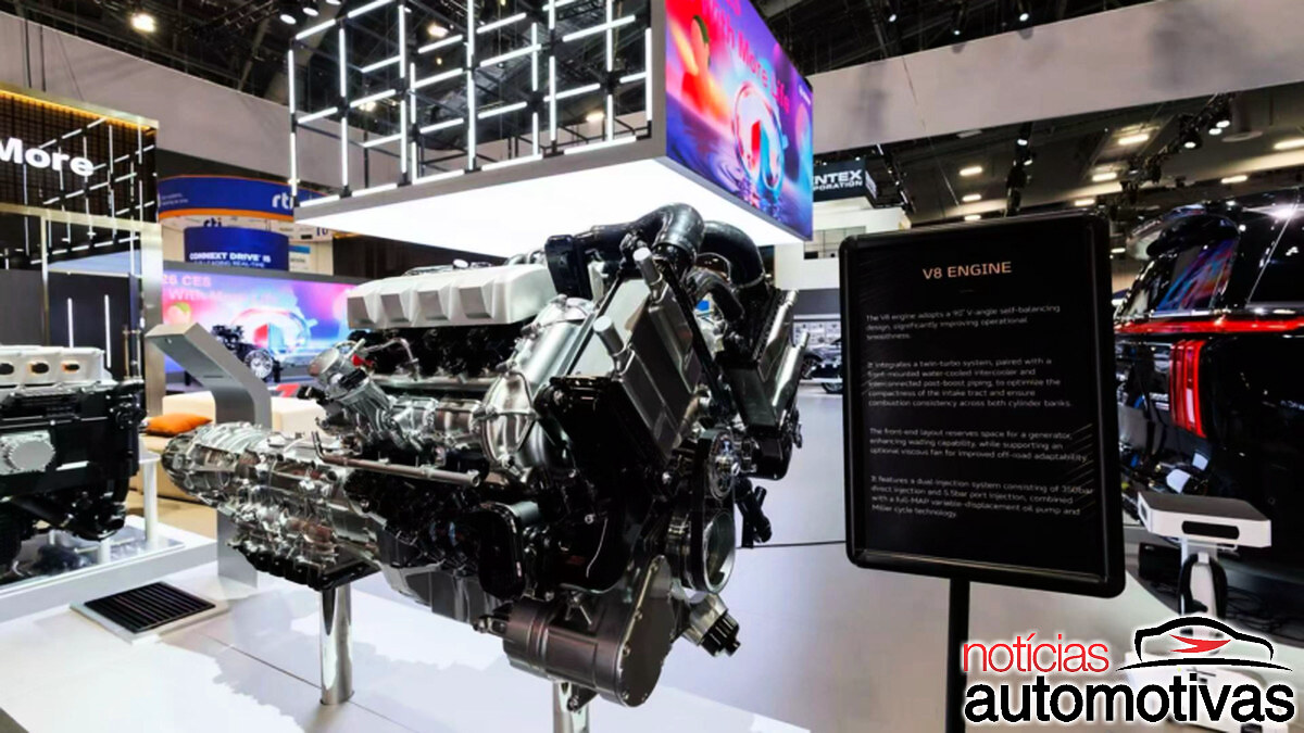 Assim, o V8 4.0 da GWM está no estande da CES 2026 para aqueles que achavam que os chineses não apostariam num propulsor de oito pistões e ainda mais na formato da letrinha mágica.