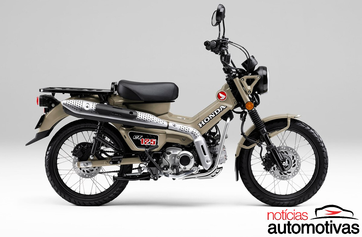 Mais individualista, a Honda CT125 Hunter Cub adiciona as cores “Asteroid Black Metallic” e “Matte Fresco Brown” a partir de 20 de fevereiro no Japão, onde seu preço é igualmente o mesmo das irmãs acima, contando com o mesmo propulsor.