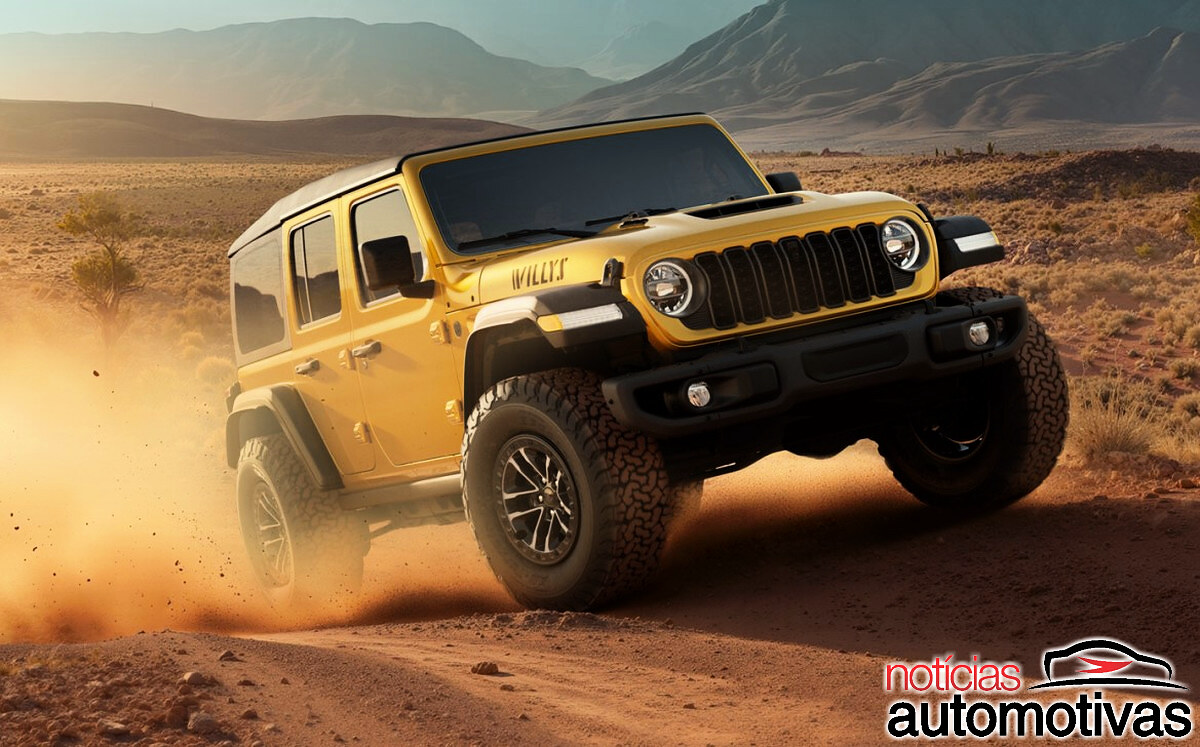 O Jeep Wrangler Willys 392 2026 acaba de ser anunciado pela Stellantis nos EUA e combina a alma do Jeep Willys original com o ronco inconfundível de um V8 HEMI 6.4 litros, chegando em março por lá na cor Goldilocks e custando US$ 69.995.