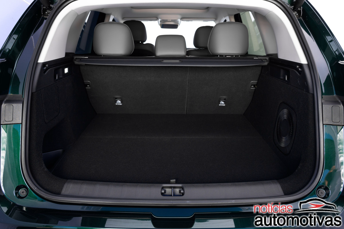 Atrás, difusores de ar-condicionado exclusivos para a segunda fileira e dois conectores USB adicionais, com porta-malas de até 465 litros (435 l na versão Ultra-Híbrida), mais uma tampa elétrica programável.