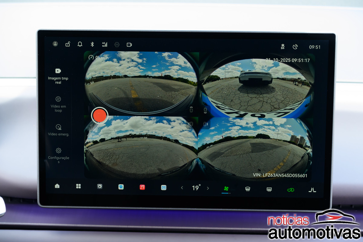 - Câmeras com visão 360º com função de chassi transparente, visão de rodas e modo gravação