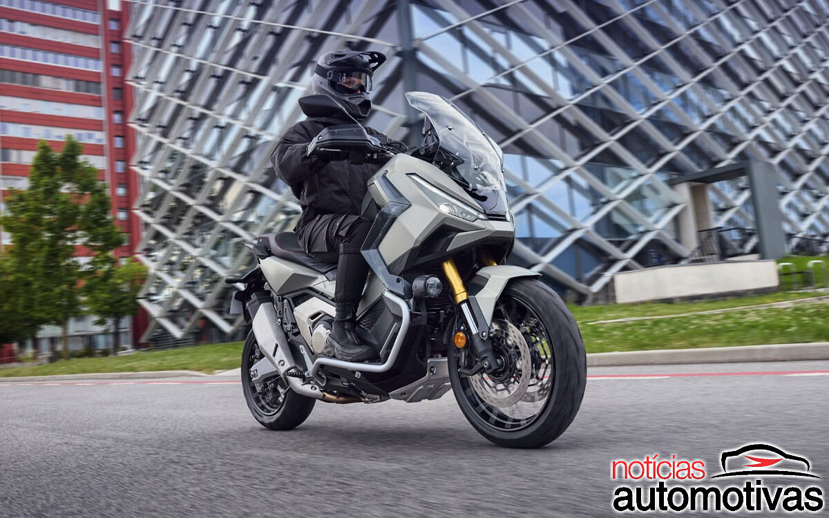 Para melhor contato dos pés do piloto com o solo, o assento da X-ADV foi remodelado e sob ele permanece o compartimento com 22 litros de capacidade, dotado de porta USB-C e capaz de levar um capacete.