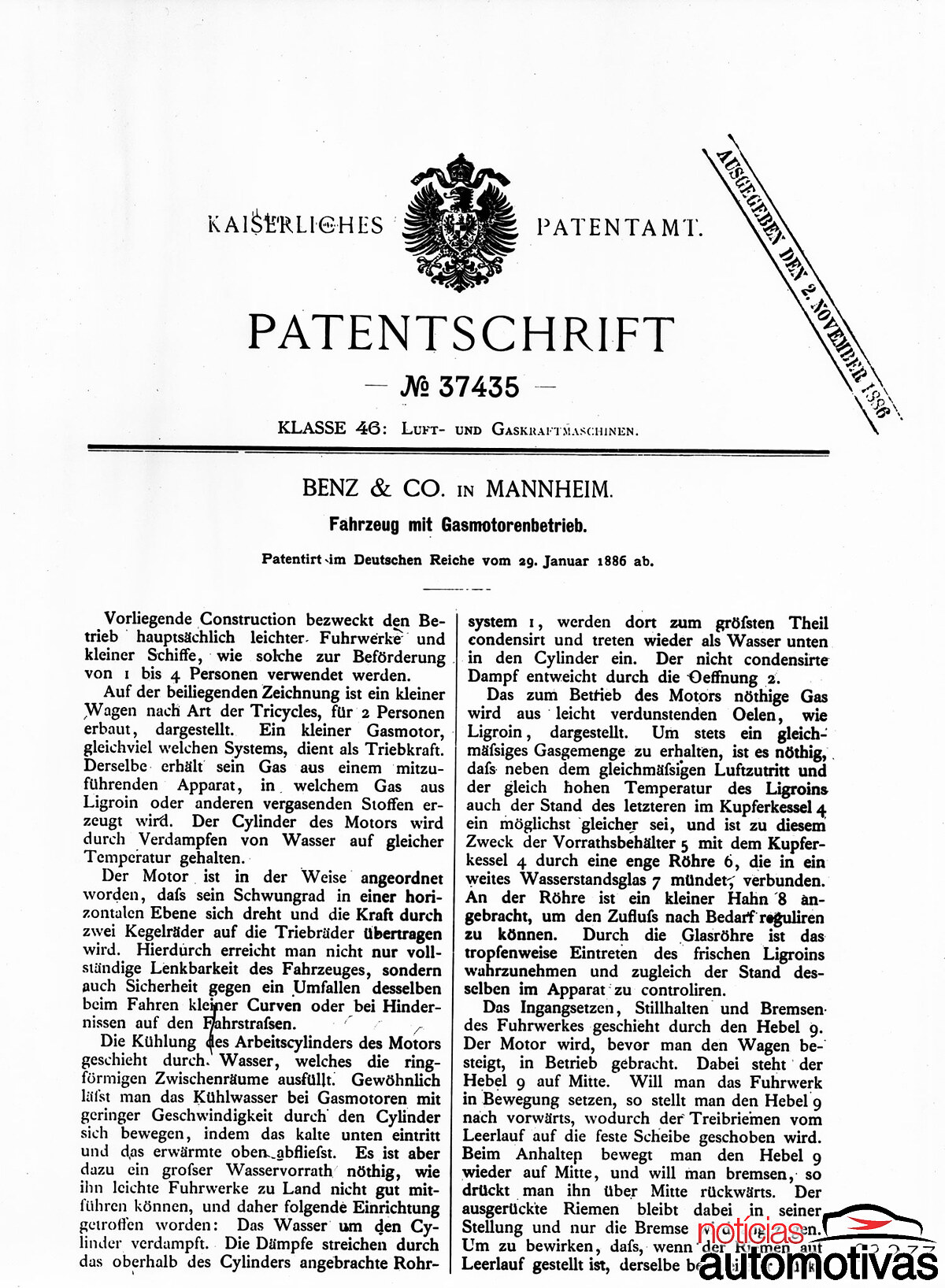 Isso foi em 5 de agosto de 1888 a bordo do Motorwagen Modelo 3, mas antes, em 29 de janeiro de 1886, Carl Benz, marido de Bertha, entrou para a história ao registrar a patente DRP 37435 do primeiro veículo alegadamente declarado como um automóvel, o “Motorwagen”.