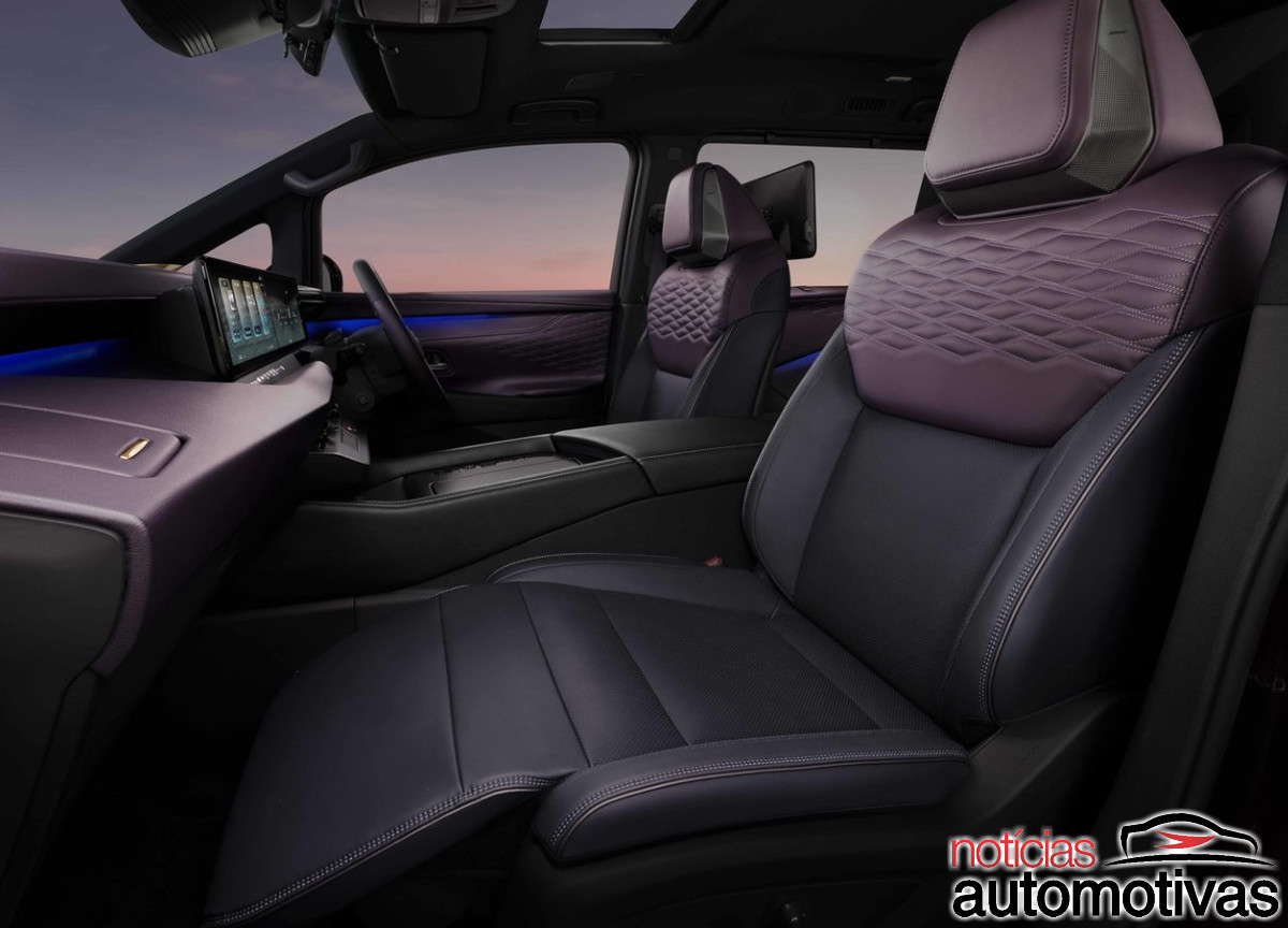 Detalhes em couro TailorFit e acabamentos em madeira, estampa Kumiko nas portas e nos bancos, mais duas telas integradas de 14,3 polegadas, inéditas no segmento.