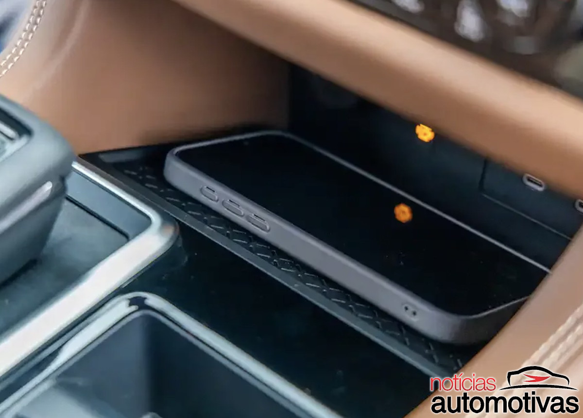 Segundo a montadora, o ímã garante alinhamento ideal entre o celular e a base, o que melhora o desempenho da carga.