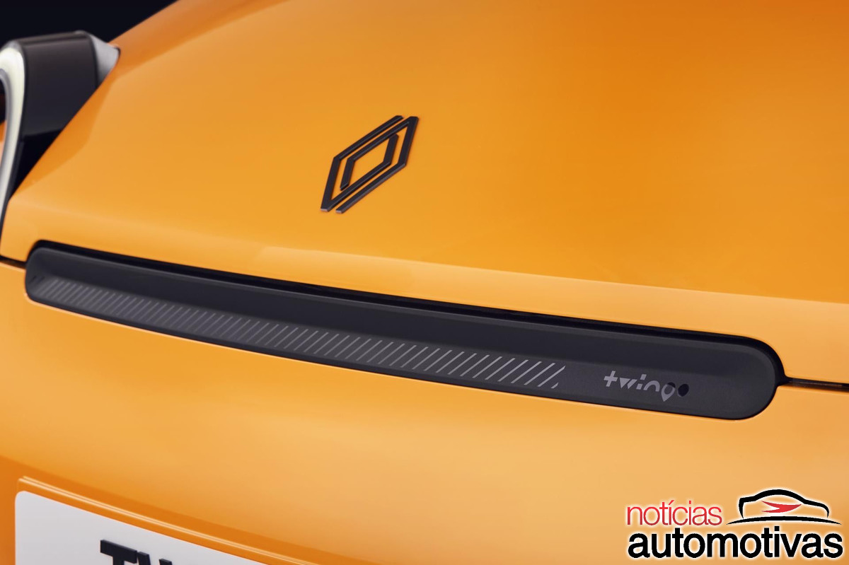 Os faróis semicirculares com luzes de LED que lembram ring lights se destacam na frente curta, que terá um aplique com o nome Twingo e para-choque com pequenos bumpers nas extremidades.