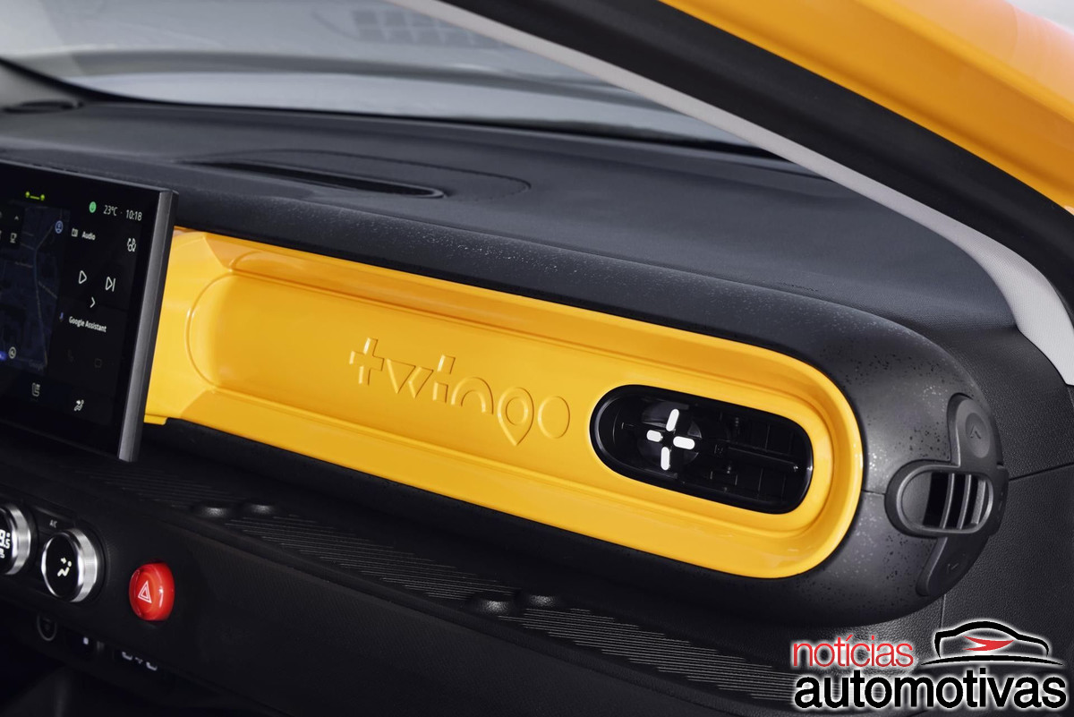 Já o cluster digital, diminuto, se funde com o formato do restante do frontal, tendo o Novo Renault Twingo ar-condicionado digital com os mesmos comandos da Dacia.