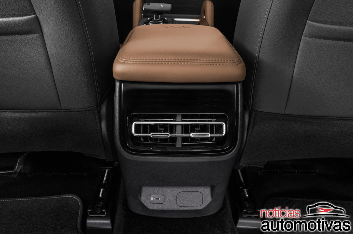 Além da grade, outros elementos cromados presentes ao redor de toda a carroceria, ela vem com rodas diamantadas de 18 polegadas com pneus 265/60. Outra exclusividade é a cor externa de lançamento, o Terra Sunrise.