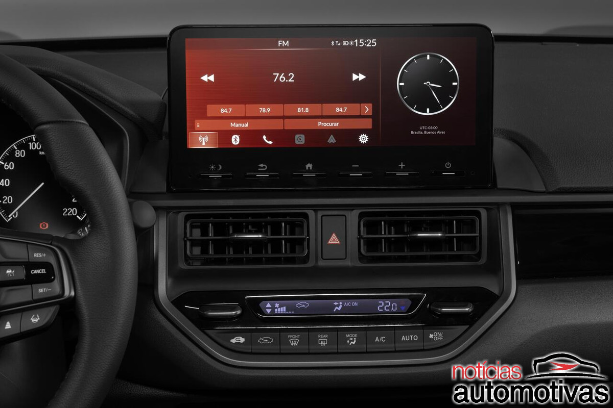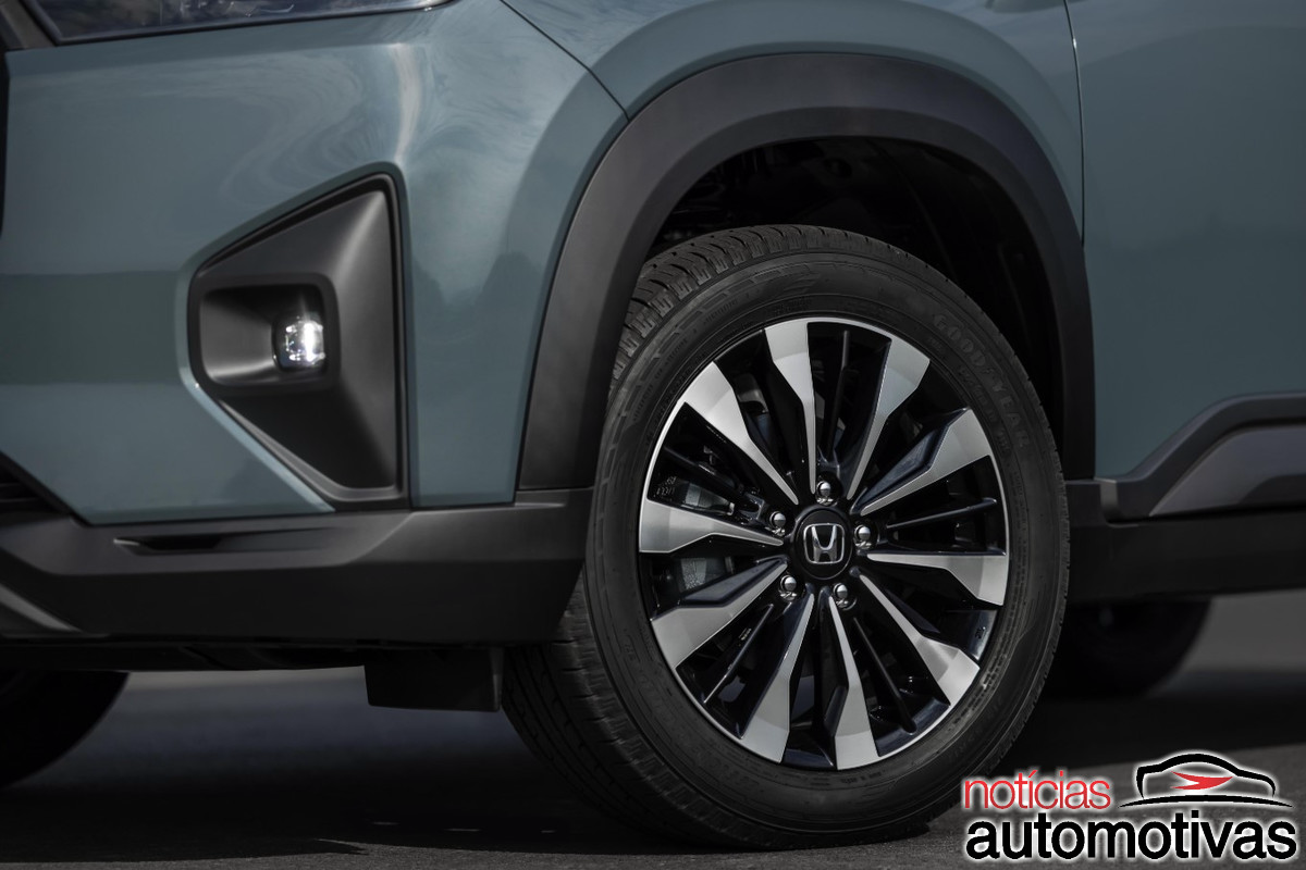 Honda WR-V EX: faróis Full LED, botão de partida (Start/Stop Engine), rodas de liga leve aro 17”, ar-condicionado digital com ajuste automático de temperatura na dianteira e dupla saída na traseira, espelhos retrovisores rebatíveis eletricamente, Smart Entry, central multimídia 10” touchscreen com Android Auto e Apple Car Play sem-fio, painel digital TFT de alta resolução de 7”, banco traseiro bipartido 60/40, seis airbags, Honda SENSING, antena tipo tubarão, câmera de ré multivisão, sensores de estacionamento traseiros.