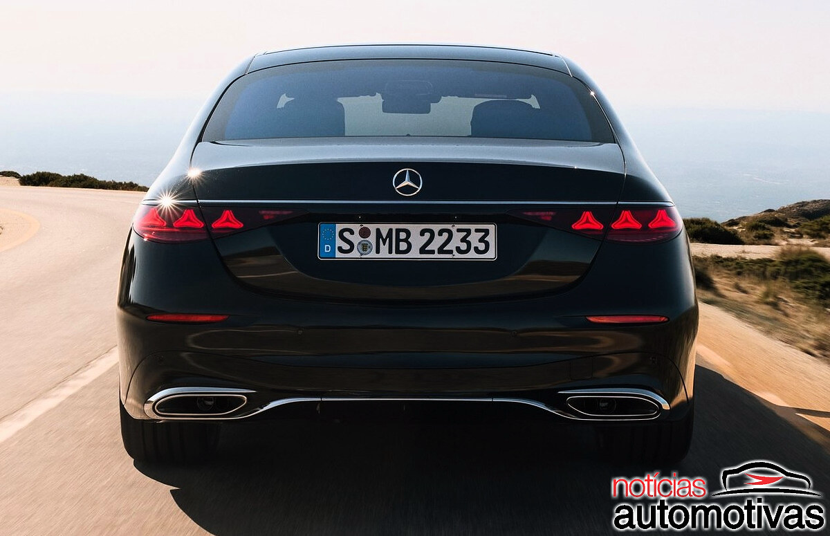 Na traseira, as novas lanternas com três estrelas emolduradas em cromo reforçam a identidade da Classe S, garantindo uma impressão marcante.