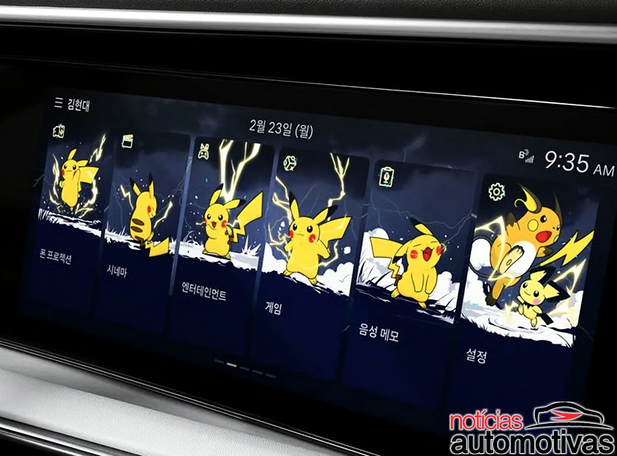 Isso permite alterar a aparência do quadro de instrumentos e da central multimídia de 12,3 polegadas com personagens como Pikachu e Ditto, além de nomes locais como Pororo, Tayo e Zanmang Loopy.