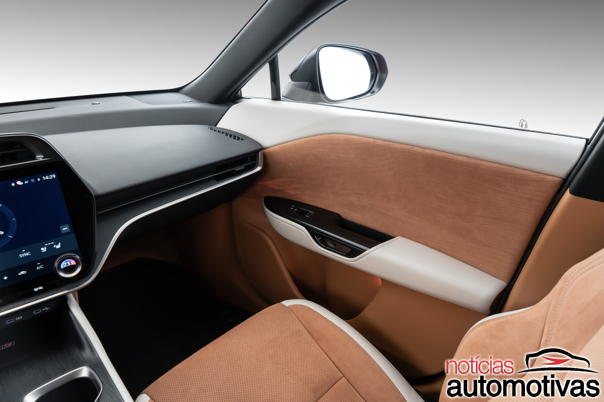 Dentro, o acabamento tem revestimento em Ultra Suede produzido com 30% de material de base vegetal e estreia a aplicação de texturas gráficas feitas a laser, uma técnica que aumenta a sensação de luxo na cabine.