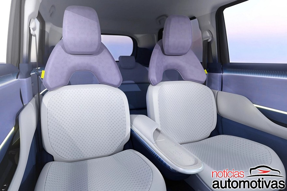 Os bancos dianteiros são montados em duas partes que se conectam, criando grandes vãos no encosto, enquanto o traseiro tem as duas partes do encosto unidas.