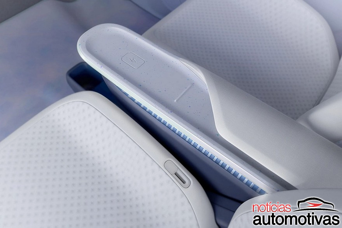 Como todo bom kei car, o Vision e-Sky conta com alavanca de marchas no painel e um vão entre os bancos dianteiros, com direito a console retrátil com carregamento indutivo de smartphone.